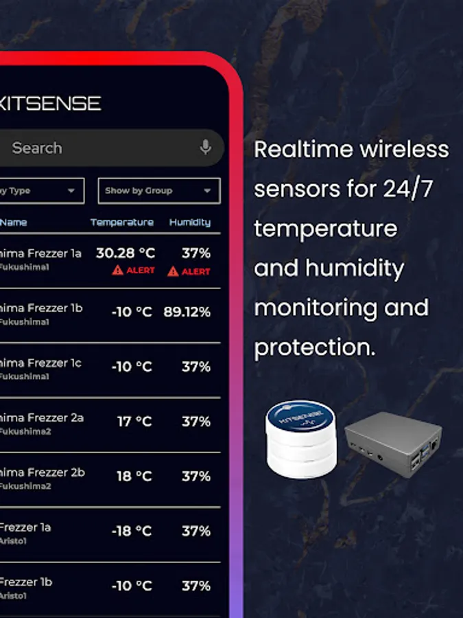 KITSENSE is a powerful, user-friendly app that connects your critical kitchen and wine appliances using our wireless sensors for 24/7 temperature and humidity monitoring and protection. You can manage all your appliances from any location and get notified in real time whenever there is any deviation from preset control parameters.
