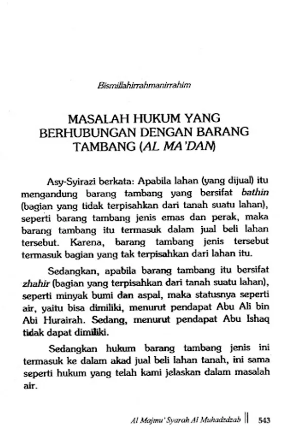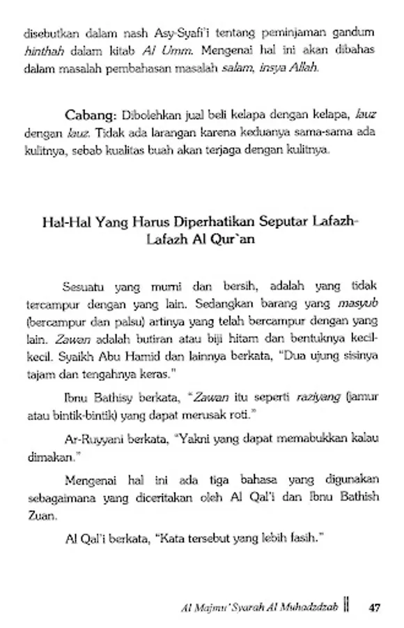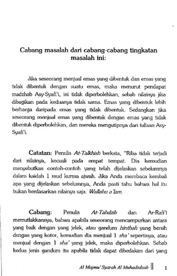 We purposely present this Fiqh book, bearing in mind that the majority of Indonesian Muslims are more inclined towards the Syafi'i school of thought. For this Indonesian edition, we have chosen a manuscript that has been tahqiq by Muhammad Najib Al Muthi'i.