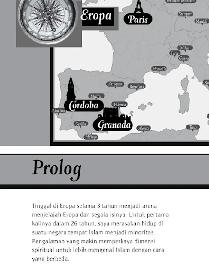 This book is a travel record of a quest. A trip that made me discover many other things that are far more interesting than just the Eiffel Tower, the Berlin Wall, the Mozart Concert, the San Siro Football Stadium, the Roman Colosseum, or the vacancies in Venice. My search has led me to a new list of pilgrimage places in Europe that I had never heard of before. Indeed, these places of pilgrimage are not holy places whose names have been mentioned in the Qur'an or the stories of the prophets. But by visiting these places, I got to know my own religious identity more and more. Made me fall in love with Islam even more.