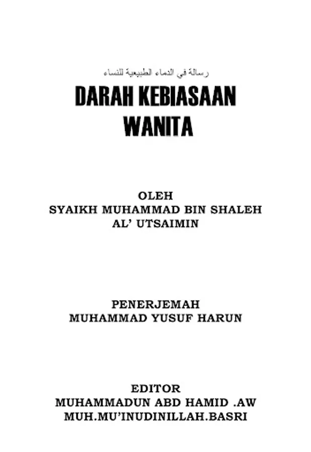 And this brief treatise is an explanation of this urgent problem, namely the customary blood of women and its laws, the discussion of which includes: