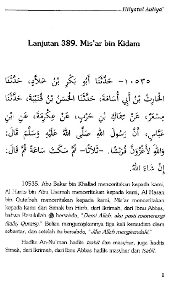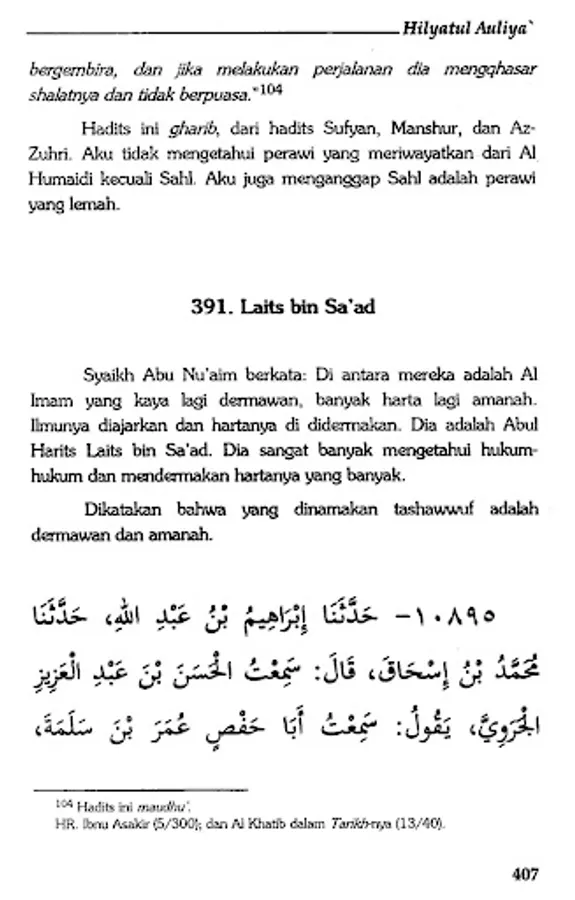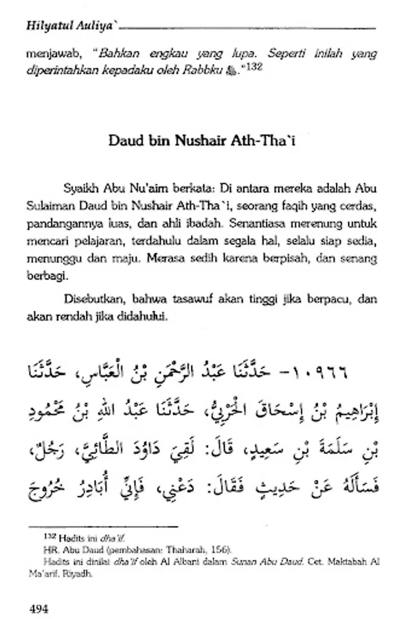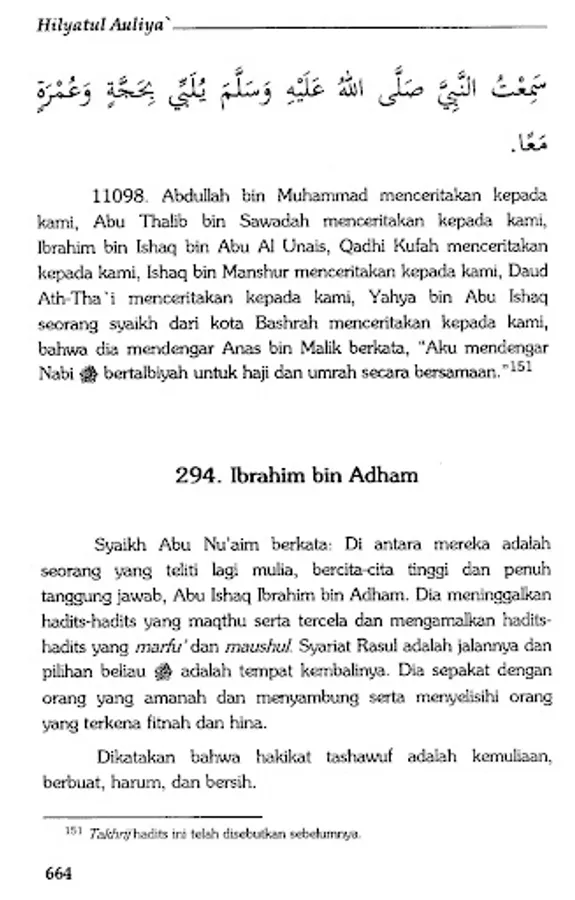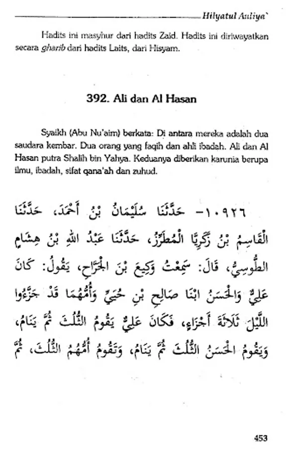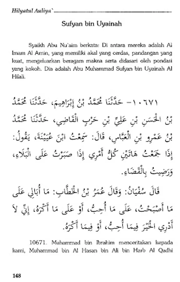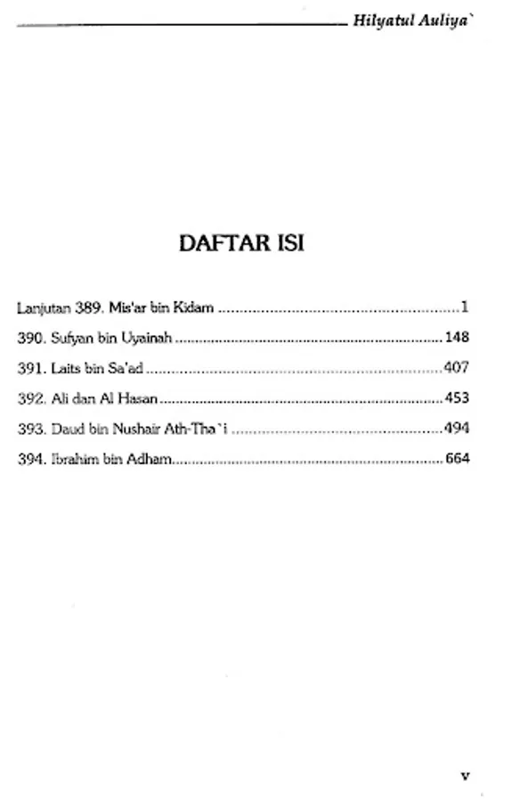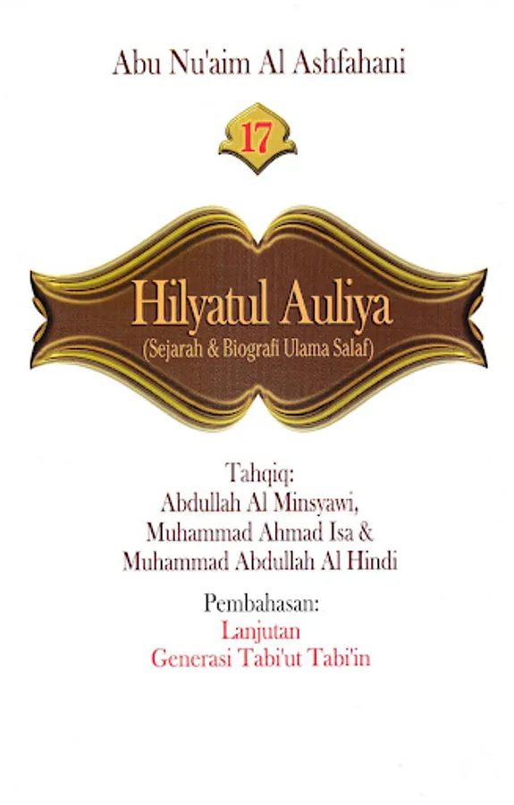 The book Hilyatul Auliya' is an Islamic encyclopedia which describes the history and biographies of the previous salaf scholars in detail. By presenting hadiths and atsars along with their sanad, Abu Nu'aim Al-Ashbahani recounts the life history of generations of Islam, starting from the generation of companions, tabi'in, tabi' at-tabi'in and so on in an authentic manner.