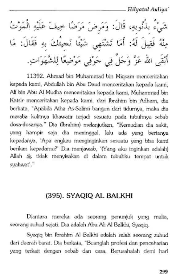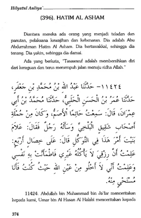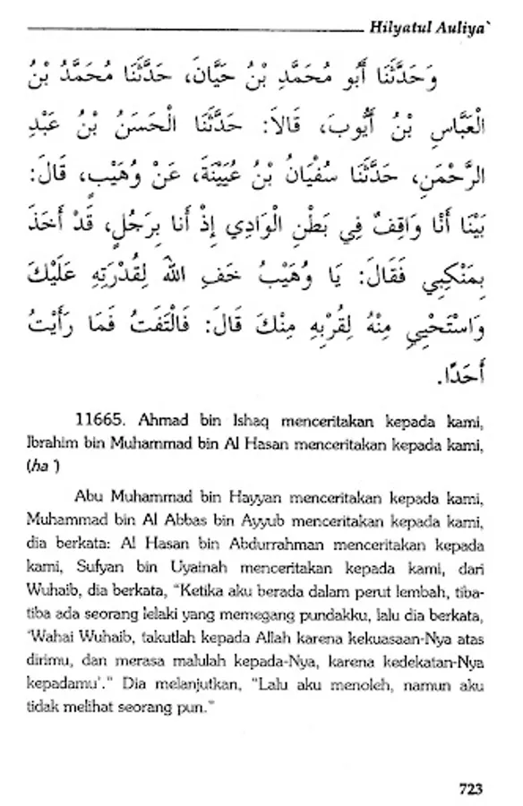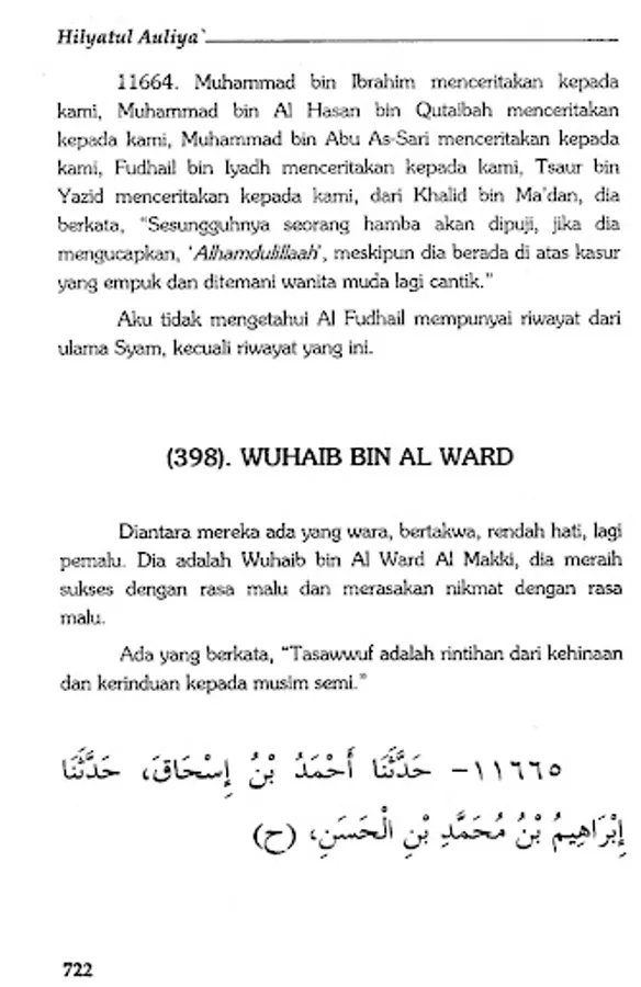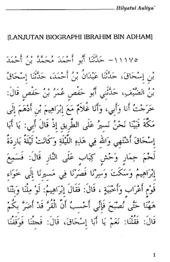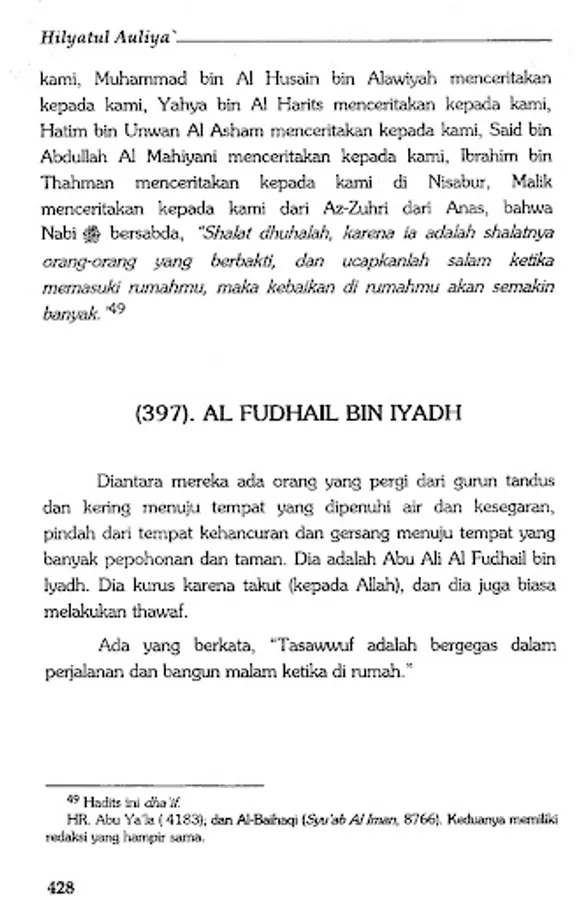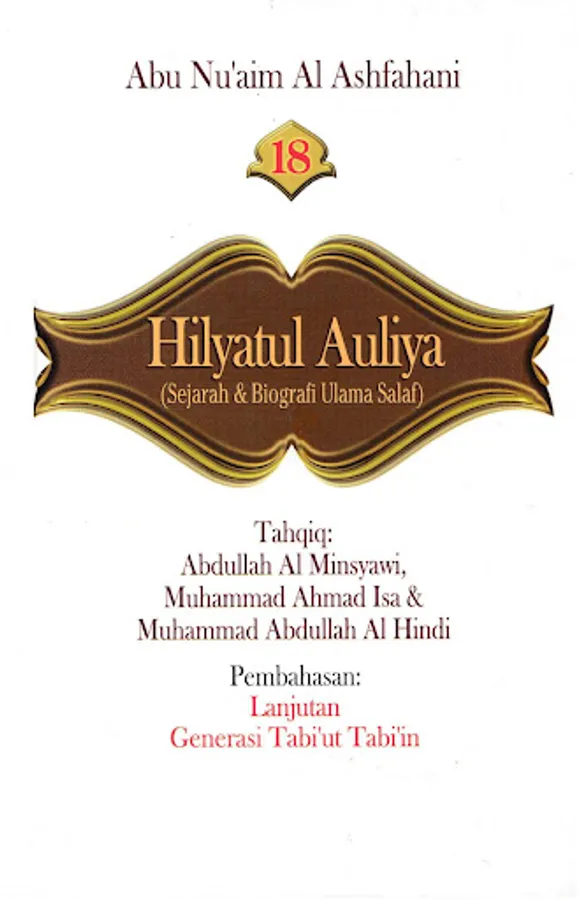 The book Hilyatul Auliya' is an Islamic encyclopedia which describes the history and biographies of the previous salaf scholars in detail. By presenting hadiths and atsars along with their sanad, Abu Nu'aim Al-Ashbahani recounts the life history of generations of Islam, starting from the generation of companions, tabi'in, tabi' at-tabi'in and so on in an authentic manner.