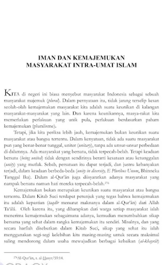 This book before you is a collection of some of the papers of the Religious Studies Club (KKA) which will be organized by the Wakaf Paramadina Foundation, Jakarta. The club itself takes the form of a large discussion meeting with an audience of about 200 people, once a month. With a certain membership and participation system as well as a discussion tradition that is pluralistic, open and tolerant, KKA Paramadina has been running relatively smoothly and continuously, since its inception in October 1986 until now.