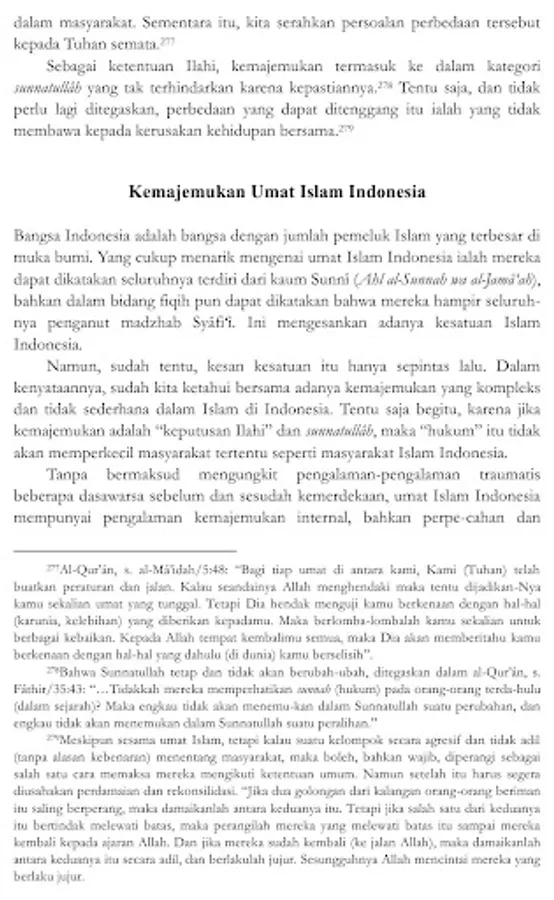 This topical approach is needed to sharpen the focus of the discussion, so that optimal results can be obtained. But each paper itself, even the total number of papers in this book, must be seen as part of an attempt to understand Islam more comprehensively and must be understood within the framework of the unity of the teachings of religion. Because of this, this book will still be followed by other books, including and especially, books which will be a collection of further papers from myself and from other writers for various Paramadina scientific study activities, especially the Religious Studies Club.