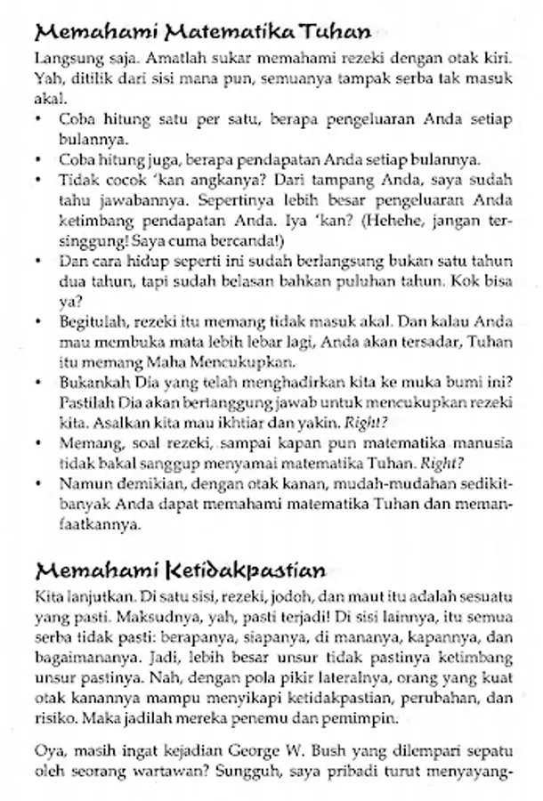 If other books show how to achieve success, then this book will show how to accelerate it - coincidentally with right-brain approaches and Islamic touches. You might call them accelerations, jumps, or miracles. Up to you. Anyway, that's the point. Whether it's related to finances, health, dreams, achievements, relationships, soul mate, or whatever. And here are the guidelines: