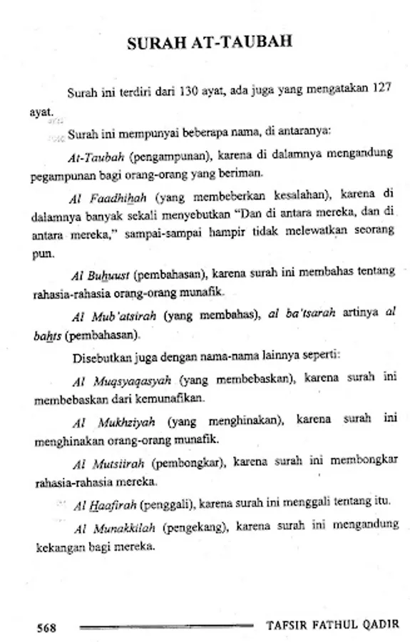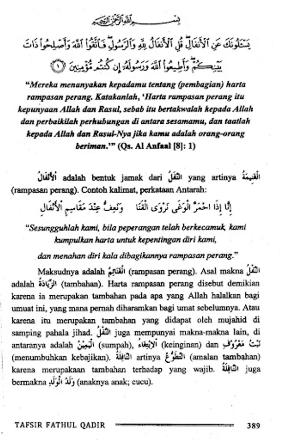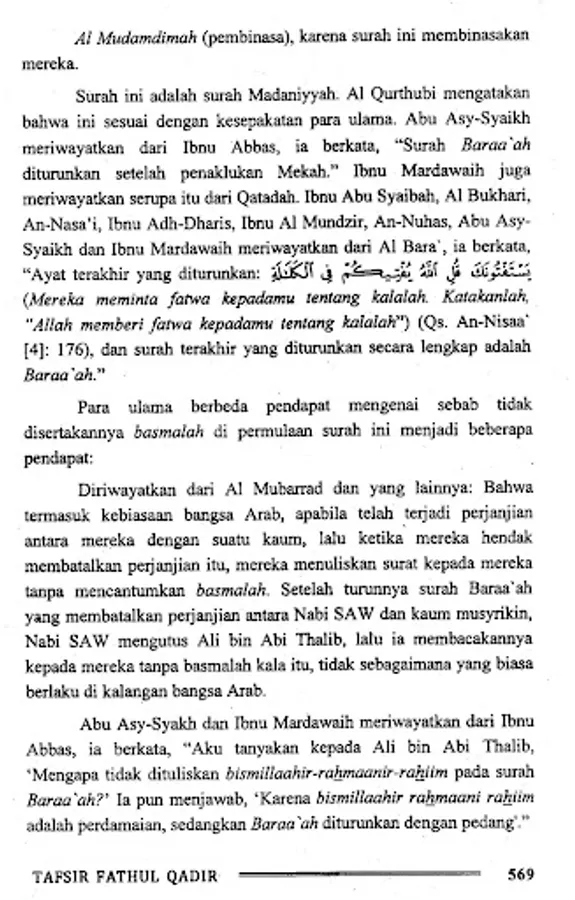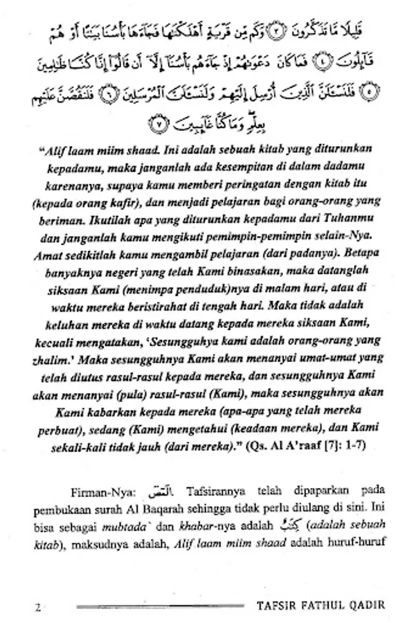 Works of Muhammad bin Ali bin Muhammad Al-Syaukani (Died 1250H). One of the interpretations of the Qur'an which contains a lot of knowledge, careful tahqiq, the benefits of a lot of knowledge and is extracted from various kinds of commentary books and others.