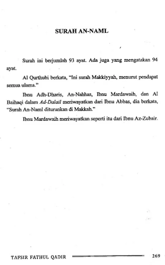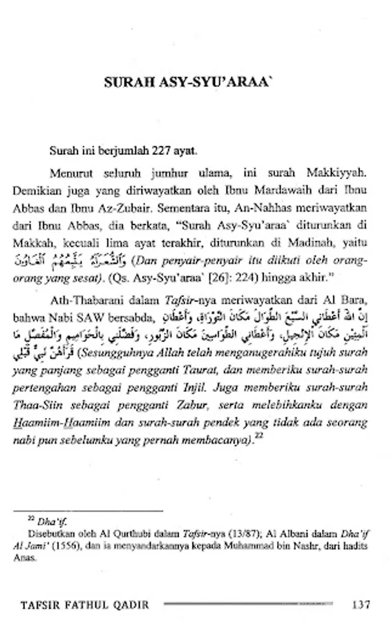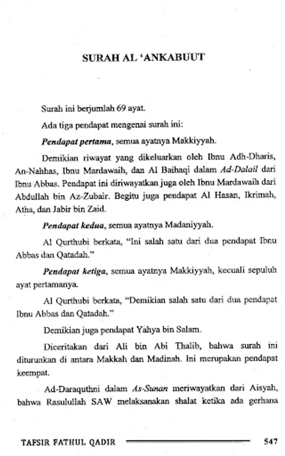 Works of Muhammad bin Ali bin Muhammad Al-Syaukani (Died 1250H). One of the interpretations of the Qur'an which contains a lot of knowledge, careful tahqiq, the benefits of a lot of knowledge and is extracted from various kinds of commentary books and others.