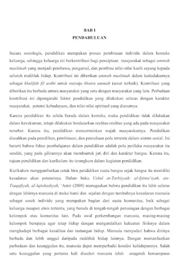 Sociologically, education is a process of fostering individuals in the context of the family, so that this family contributes to the creation of society as a Muslim ummah which is the bearer, practitioner, and builder of values of compassion for all living things. This contribution was given by the ummah Muslimah in her position as caliph fil ardhi towards khairu ummah (the best ummah). The contributions given differ from one community to another. This difference in contribution is influenced by educational factors that are carried out in harmony with the character of the community, cultural potential, and the spiritual values it adheres to.