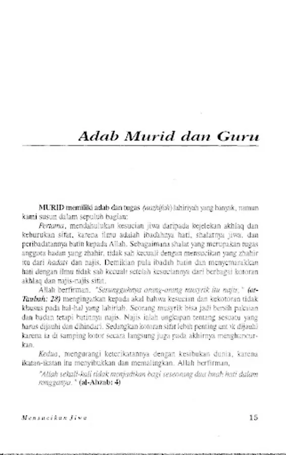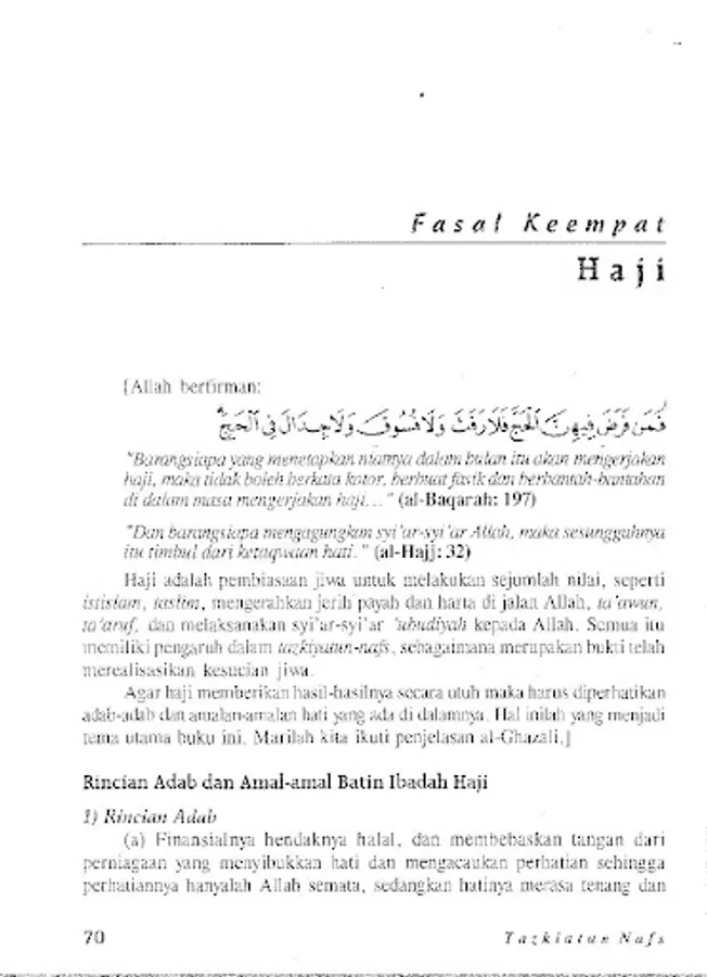 This book is the essence of the book Ihya' Ulumuddin by al-Ghazali, which was compiled by Sa'id Hawwa. In his time, al-Ghazali faced a situation of mental poverty from the souls of Islam, so that the publication of this book can contribute ideas and enthusiasm for all of us in cleansing our souls.