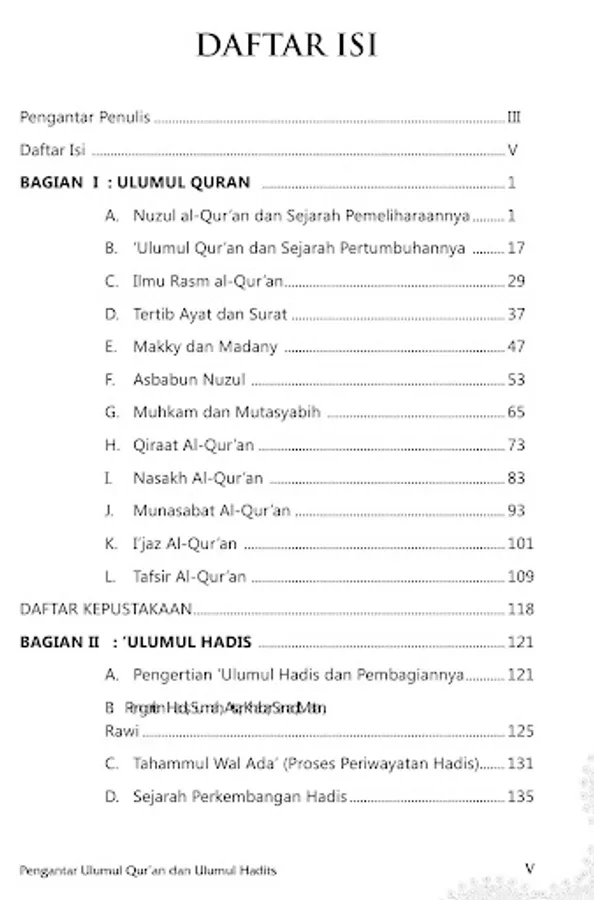 For this reason, it is hoped that the presence of this simple book will enrich the literature of students who wish to study the lectures of 'ulumul Quran and 'ulumul hadith. It is our hope that this book will also be of use to the general public who are concerned with the sciences of the Koran and hadith and add to the enrichment of collections of reading material or treasures of Islamic sciences.