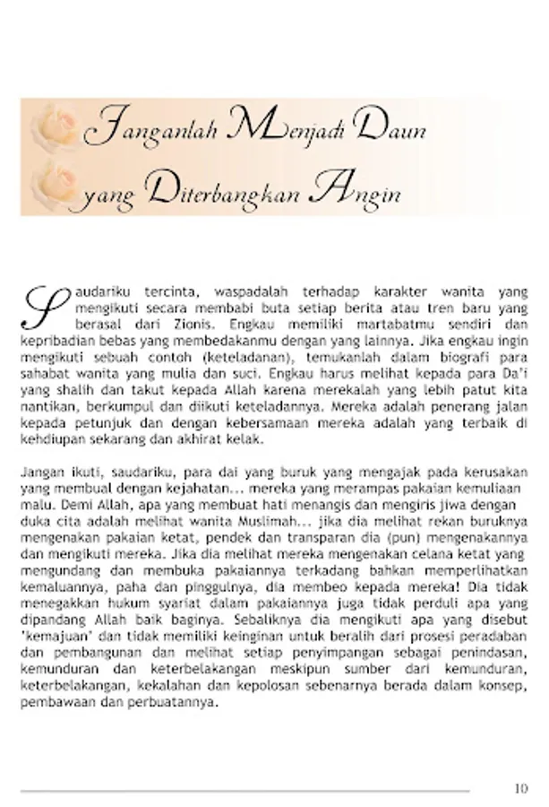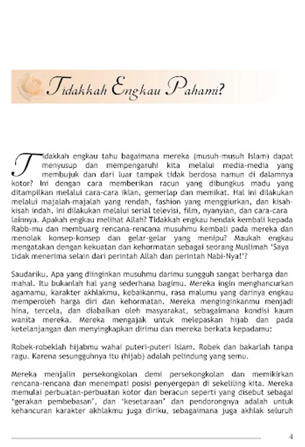 Finally, we chose to translate this book, to touch the hearts of Muslim women, inspire them to return to their religious teachings, and to wear their shameful clothes again. That the glory of a woman is not in the pseudo-freedom that is propagated by the Western world, but that the glory of the dignity of women is only in the teachings of Islam, in the Book of Allah and the Sunnah of the Prophet Muhammad as understood by generations of pious salafus, a noble position that has never been achieved by any religion and civilization. in this world. Wallahu a'lam.