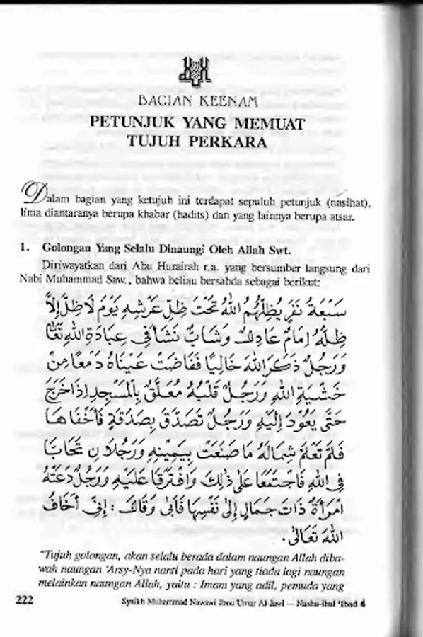 "Nasha-lhul 'Ibad" is a book full of instructions for faithful servants, in relation to the Khaliq Rabbul 'Izzati, Allah SWT, towards fellow human beings, especially in matters of worship and obedience to Him. It also contains ways to reach the pleasure of Allah and get a reward that is appropriate from His side, namely His heaven which is full of pleasure and peace.