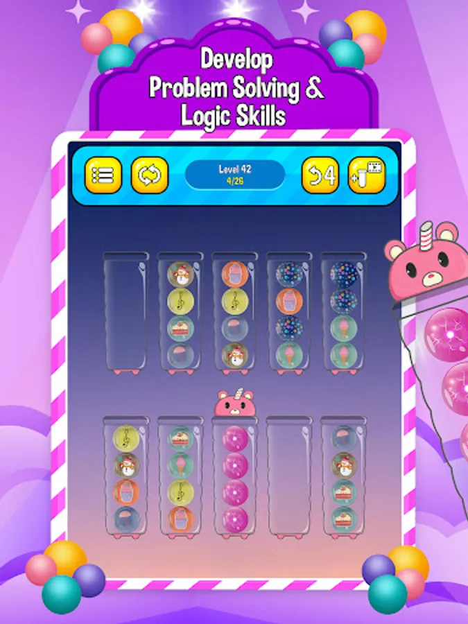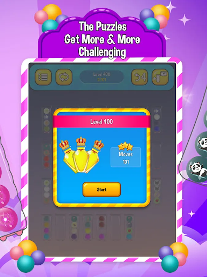 SortPuzzle: Ball Sort Puzzle - Sort Game, is a fun and relaxing game that entertains and stimulates your brain! Sort the colored/patterned balls in the bottles until all the same colors are together in the same bottle.