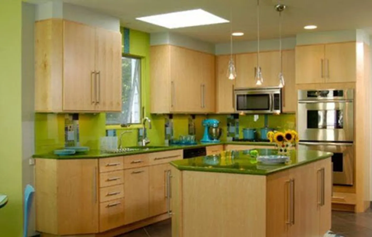 White can be used in combination with any color. Though white alone can look great too but if another color is used in combination then it can be further complementing for the kitchen. Pale green would be perfect in combination with white.
