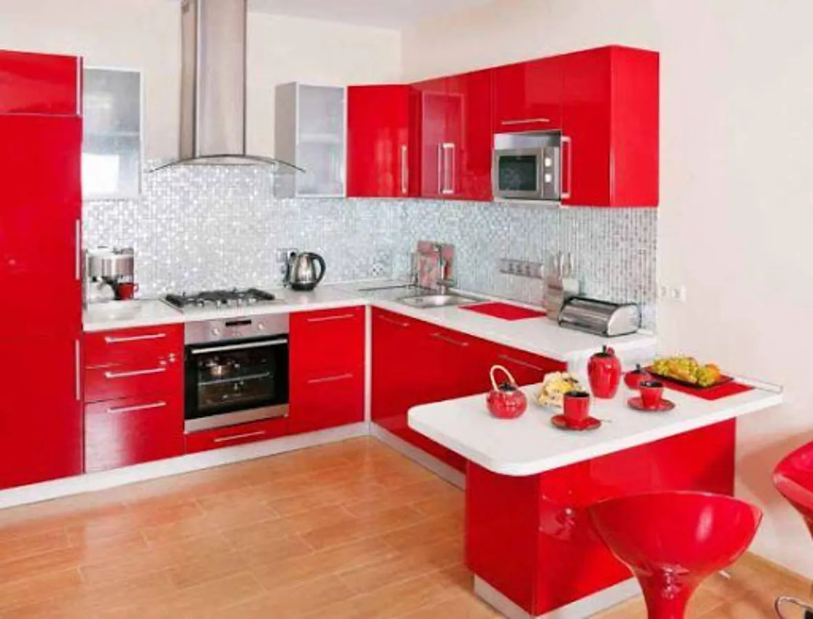 The paint of the wall can also be a complementary factor for your kitchen. Pink walls and white cabinets can look fabulous. Rosy pink wall being light in color tone will make the kitchen look spacious. Furthermore, if you place some nice accessories like colorful vases then it can again make the kitchen look fab. Those with glass door fronts should go for this idea readily.