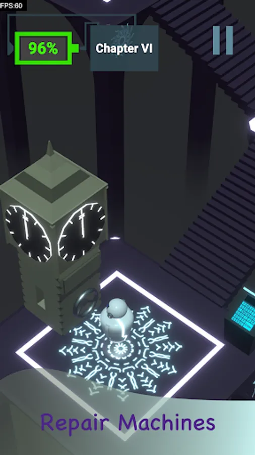 --Explore 15 dynamic levels from a third-person perspective, guiding the robot by touch to navigate intricate scenes. Crack hidden level codes strategically placed throughout the environments to progress through the storyline.