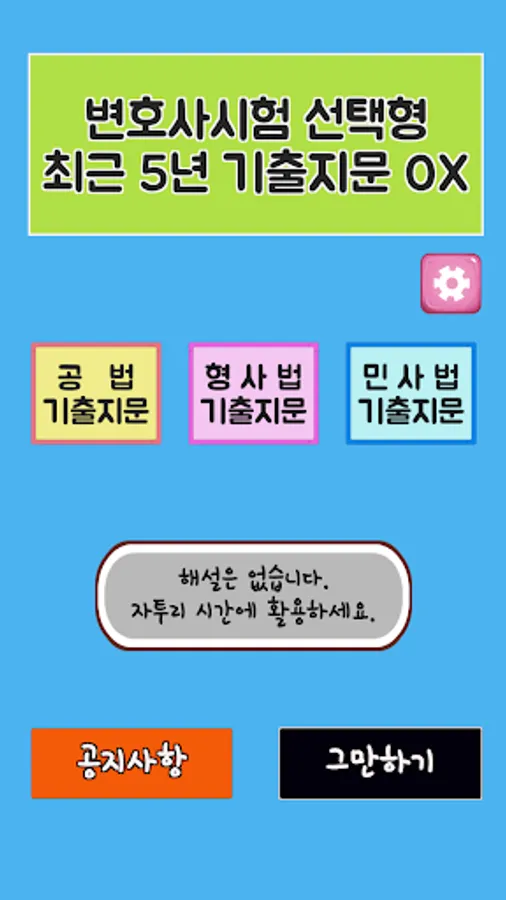 Previous questions for the bar exam were downloaded from the website of the Ministry of Justice, and each question text was composed of OX quizzes, excluding case-type questions.