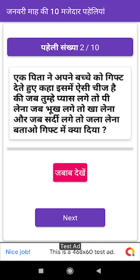This app Easy Hindi Paheli is one of the best app through which we are providing you latest paheliyan. Top paheliyan and dimagi paheli in hindi will increase your IQ level. Easy to use and attractive user interface.