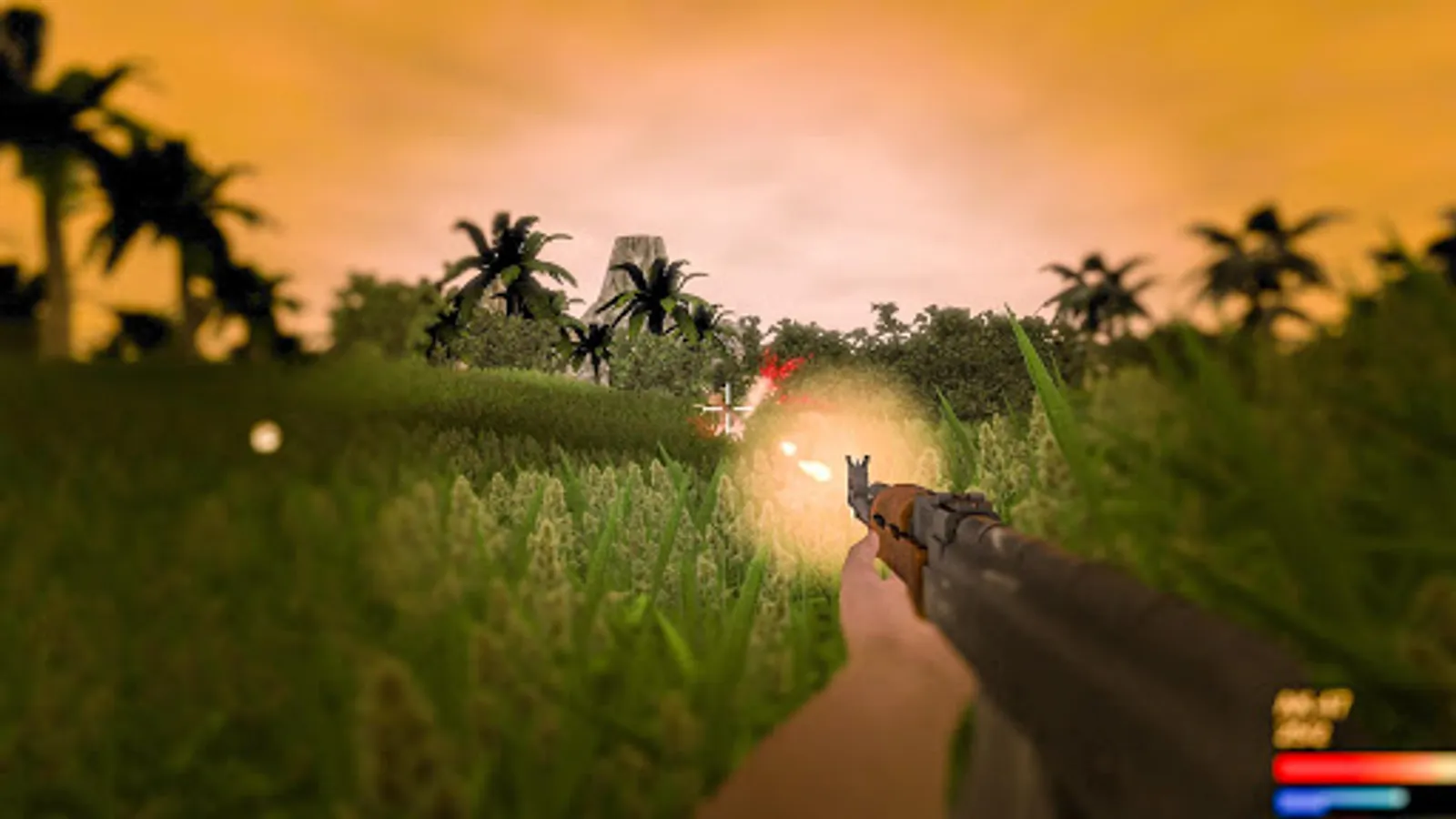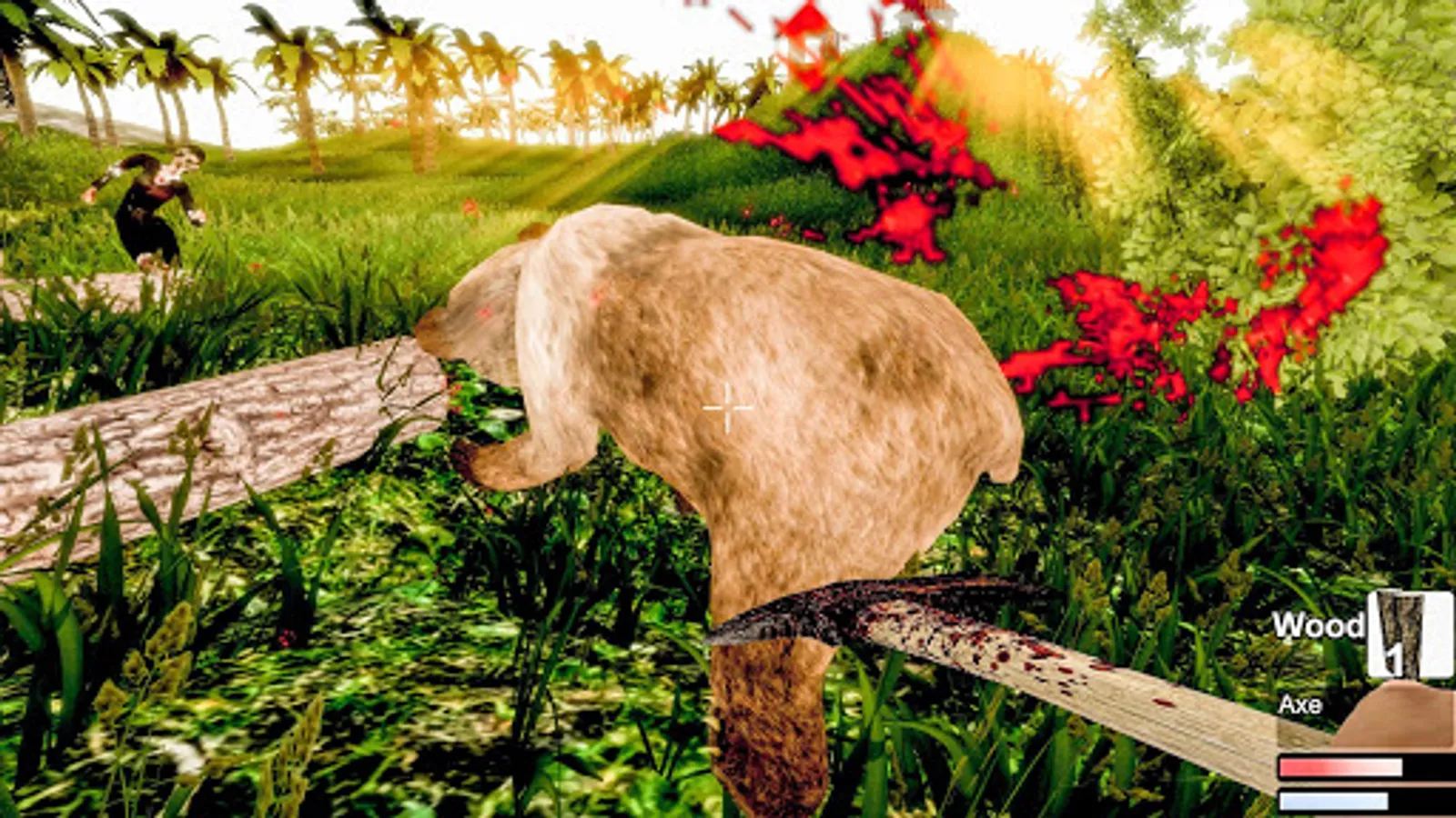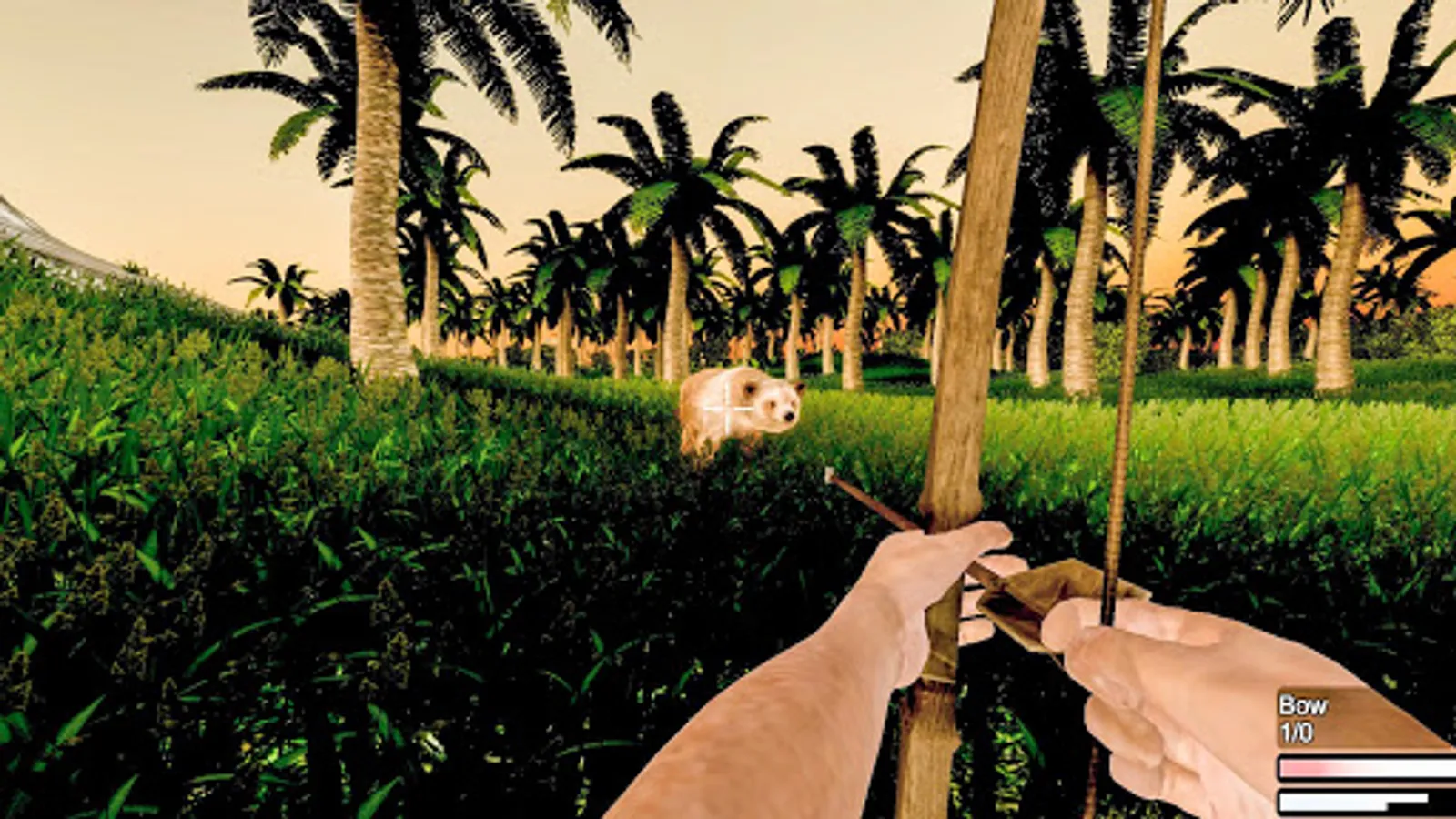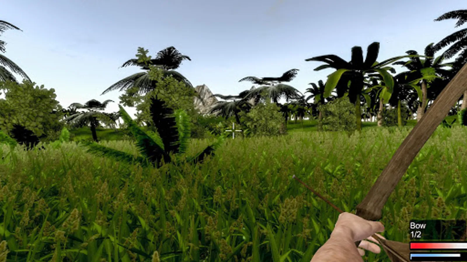 You wrecked near the island. The game combines survival simulator and stealth. You will have to explore the open world, defense, hunt animals, build different buildings (house, tent, etc.), search for weapons (bow, gun and machine gun) and more.