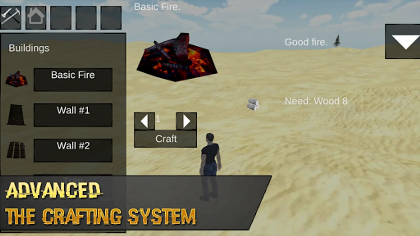► Do yourself axe, defend, chop down trees and collect stones for the construction of houses, camps.