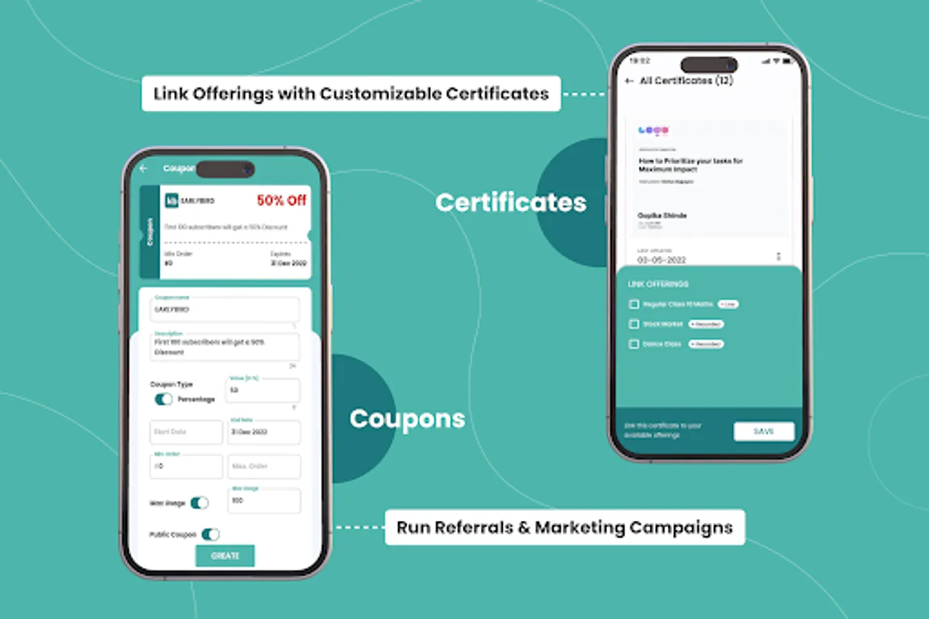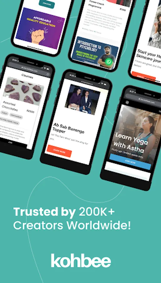 From growing your community to building and selling premium digital products, you can do everything on the Kohbee App. Create Workshops and Online Courses on the Kohbee App and use our growth tools such as High performing landing pages to generate relevant leads. We also build apps for educators to list on Playstore and grow their online business.