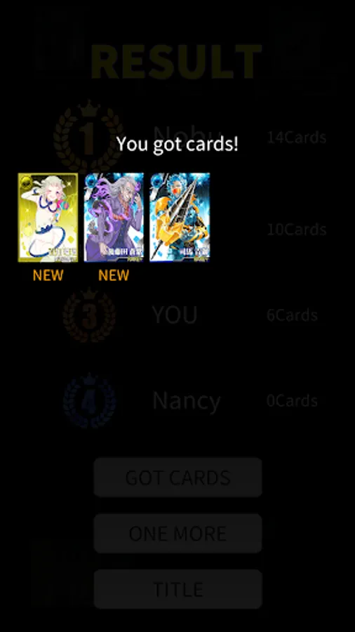 All cards are gained by players, after that the winner is the person who have a lot cards.