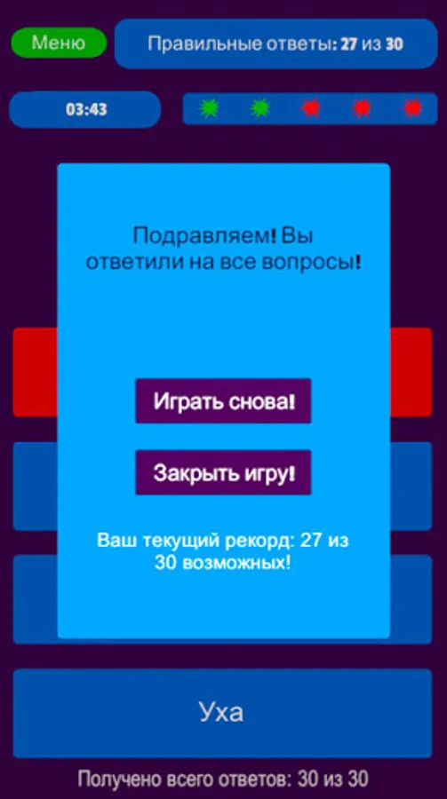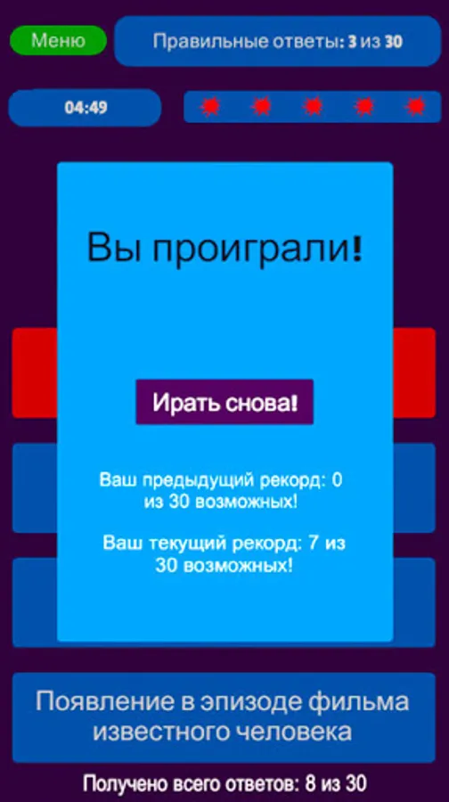 If you didn't meet the allotted time (10 seconds for each answer), then you lost again.