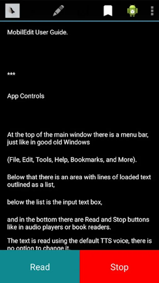 "Mobile Editor" app allows the users to read edited texts in voice, as well as texts with the "FB2" extension.