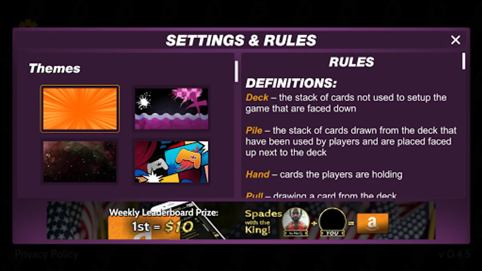 Touch the orange gear in the top left corner of the main menu to learn more about these features and to read the official UKNO rules (I know you are not going to read them, LOL).