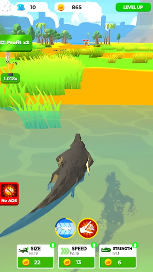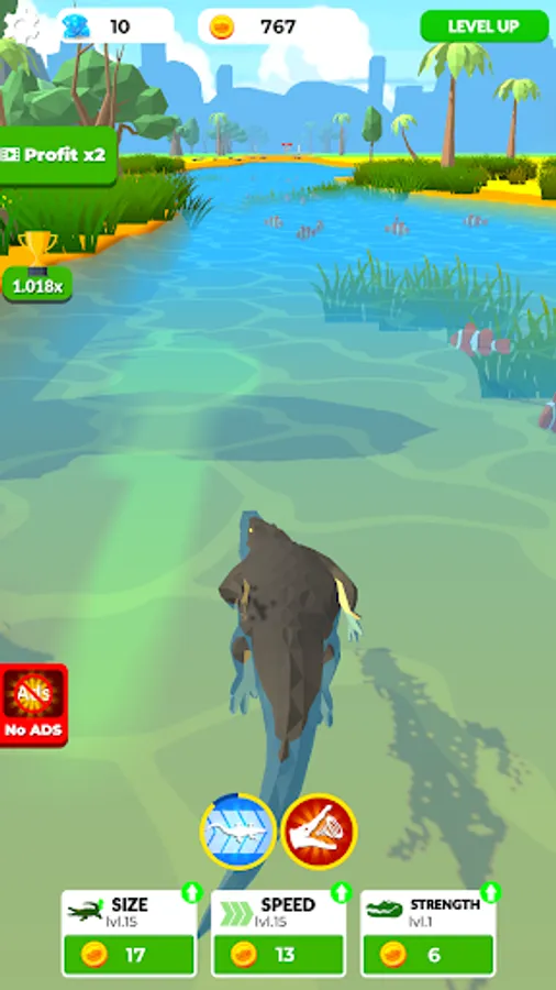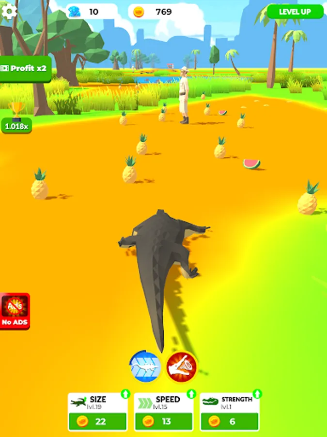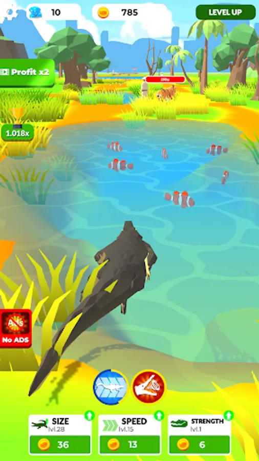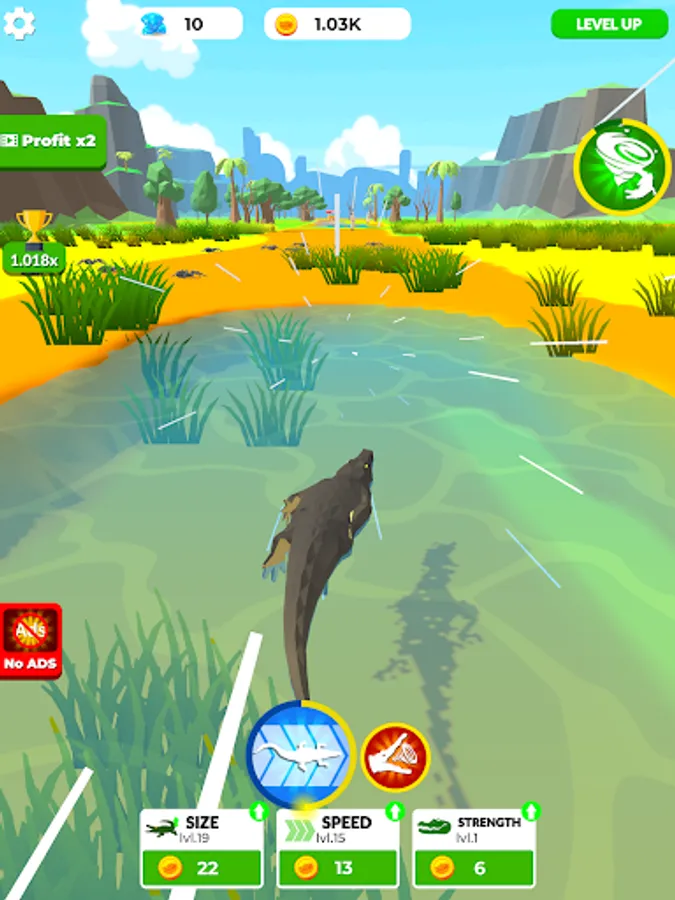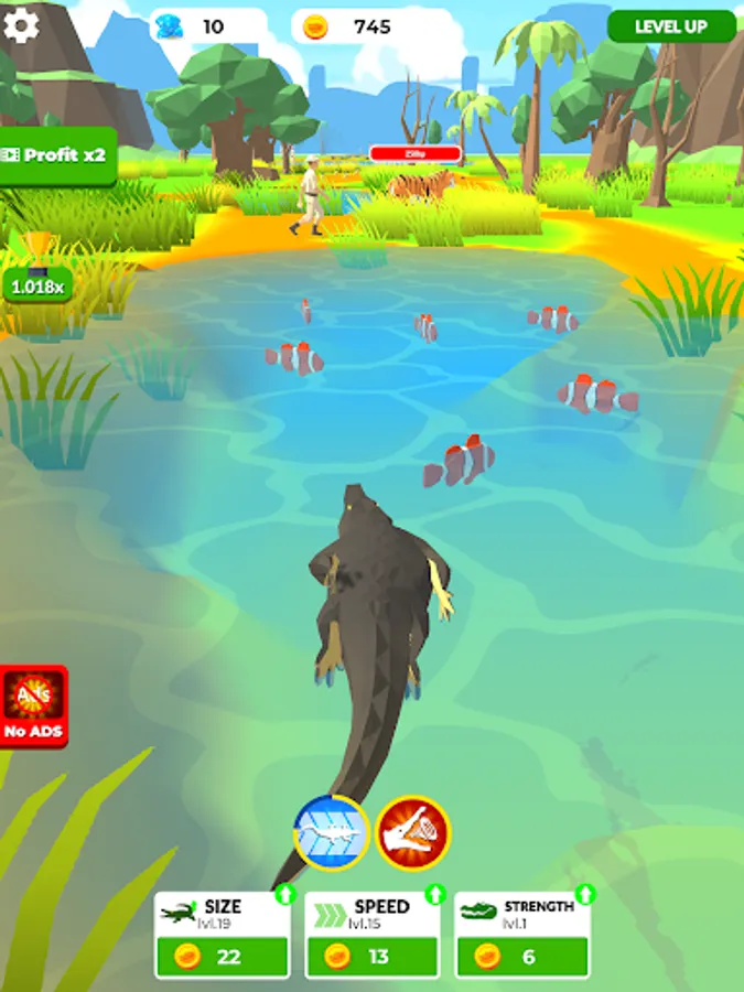Craving even more chaos and devastation? Augment your crocodile to intensify its bite and predatory prowess. Acquire menacing fangs and enlarge your reptile to consume more substantial challenges. Advance your creature’s land speed and aquatic agility. Enhance the vitality and assault capacity of your marsh monarch. Accumulate points to bolster your game stats. Harness experience by hunting and devouring prey. It’s set to be a wild adventure!