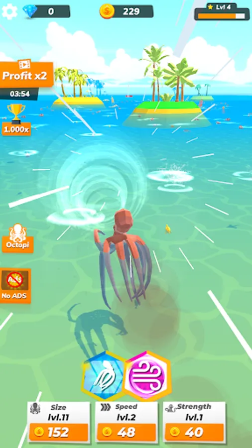 Your idle octopus must evolve to increase its power in the ocean. Remember that you are not the only predator in the coastal waters! Just click and grow, hunt and eat. Each sea beast has unique bonuses to increase your profit and strength. Evolve your fish into a great octopi, devilfish, or Kraken! They have monstrous 3D tentacles to bite! Upgrade your monster’s swimming speed, damage, and resistance levels.