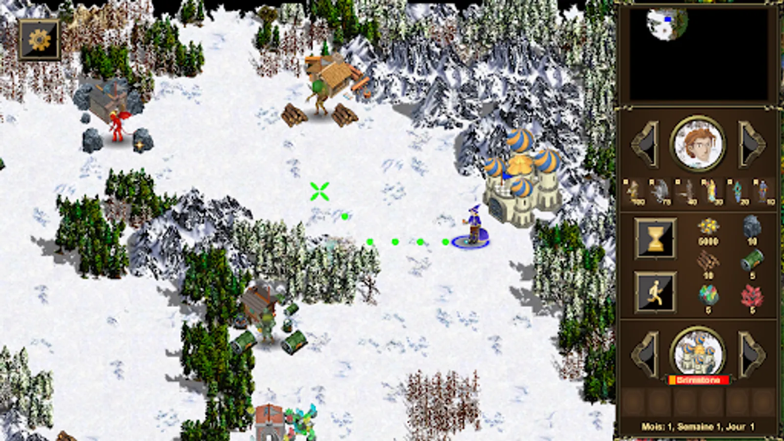 You control a hero who can recruit armies, move around the map, capture resources, and engage in combat.
