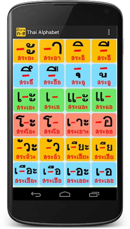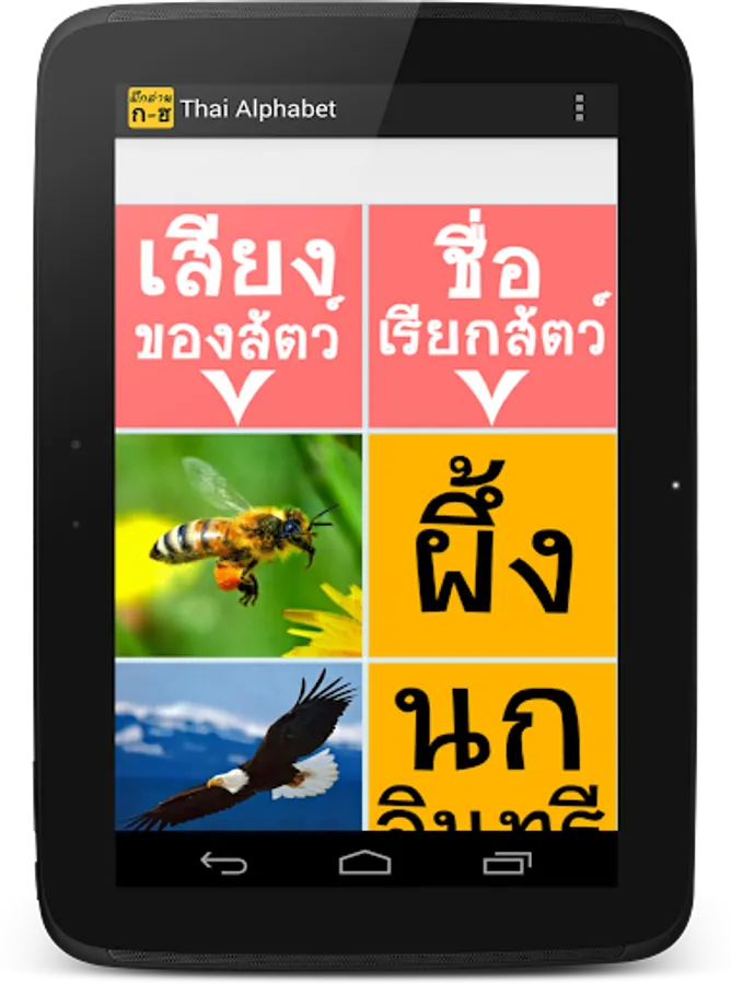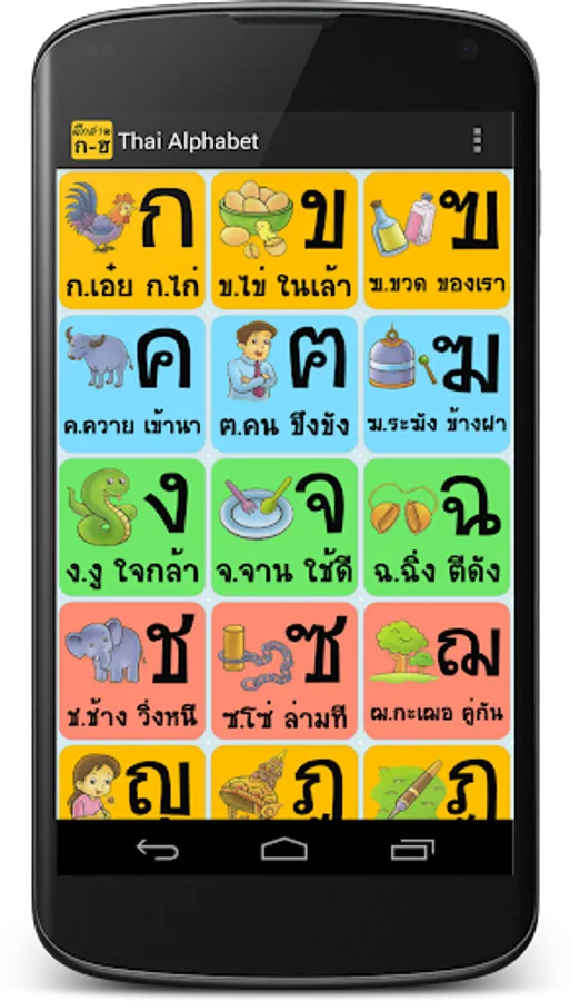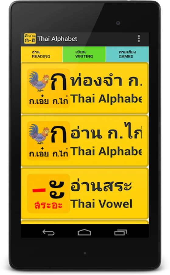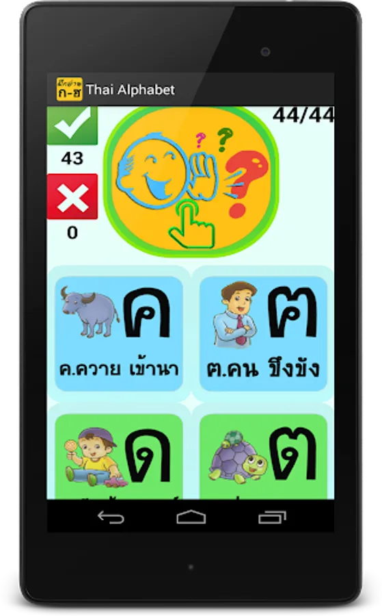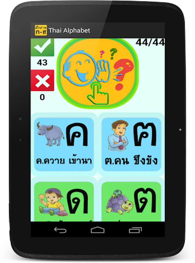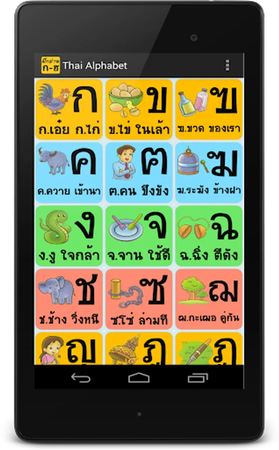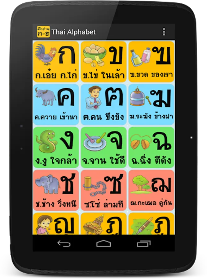 In reading application with a keypad, a consonant letter Thai. 44 characters from a. Chicken to Owl By pressing the button, it emits 44 sounds with the letters Thailand Press. Then there is a tonal language with Thai by 32 Vowel and 4 Tones. Thai with the diacritical marks in words. Number from 1-20 Thai