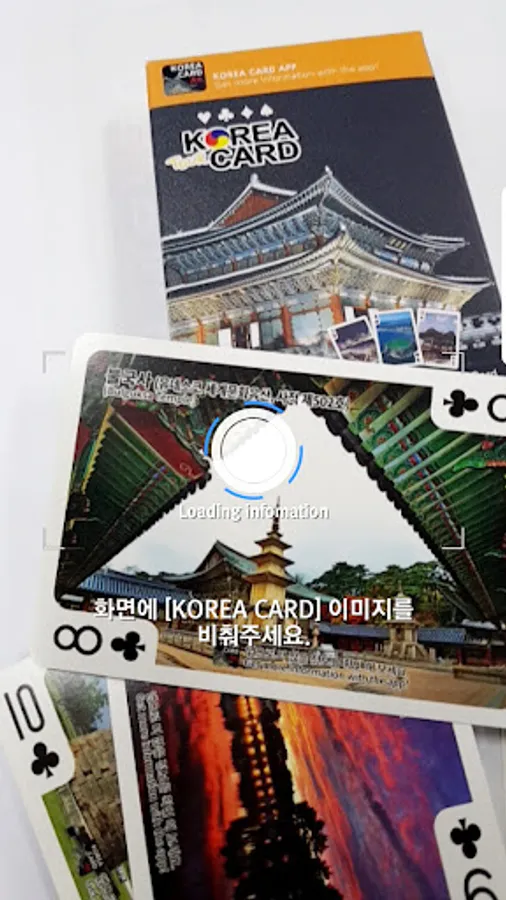 앱을 실행 후, 가지고 계신 각 카드의 사진을 비추기만 하면 자동으로 관광지의 이미지를 인식하여 해당 정보를 정확하게 알려드립니다.