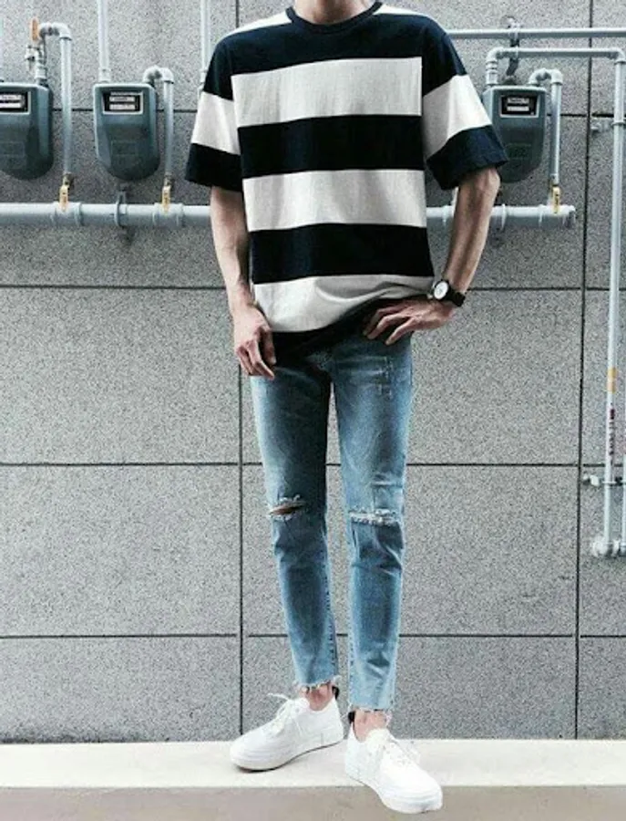 It doesn't hurt you to try with V-Neck T-Shirt. In fact, in Korea alone this V-neck shirt is very popular! Even among women and men. You can choose a natural color and combine it with an outer like a cardigan or jacket. For his subordinates, choose jeans with dark colors. In addition you can use a Casual belt.