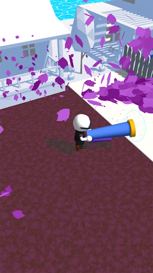 You control the leaf blower guy - move around the area and blow them leaves away!