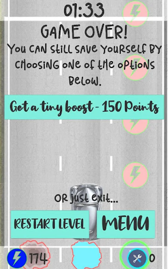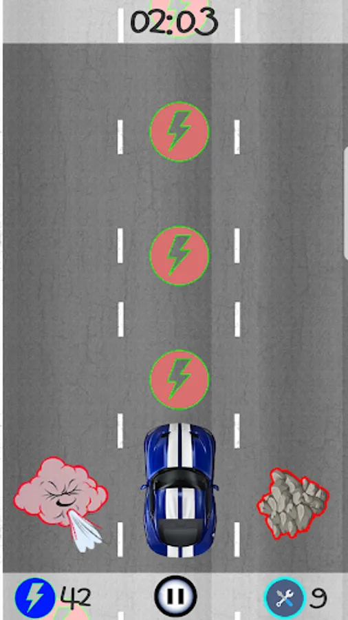🎯 Avoid road obstacles and collect game elements to finish levels.
