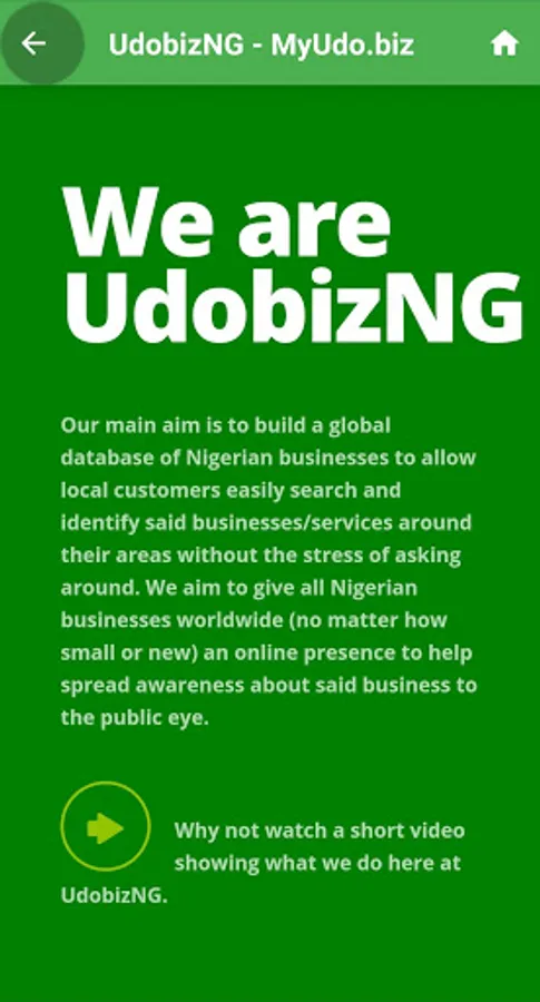 Our main aim is to build a global database of Nigerian businesses to allow local customers easily search and identify said businesses/services around their areas without the stress of asking around. We aim to give all Nigerian businesses worldwide (no matter how small or new) an online presence to help spread awareness about said business to the public eye.