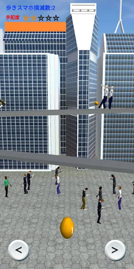 ■ Select the ball with the selection button displayed on the screen and hit the ball on the person who is walking.