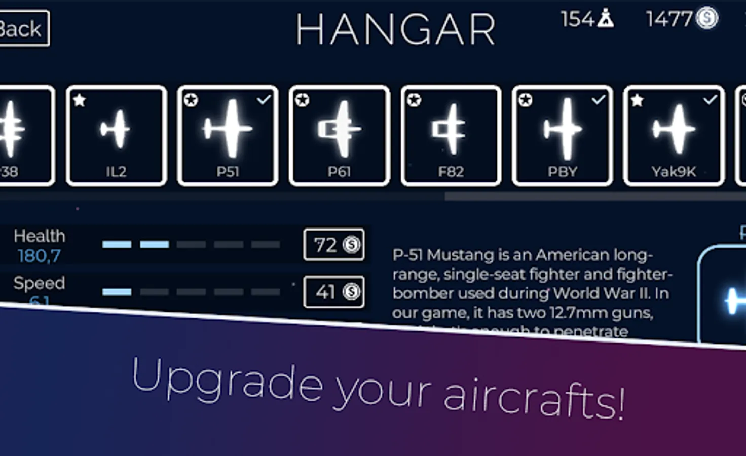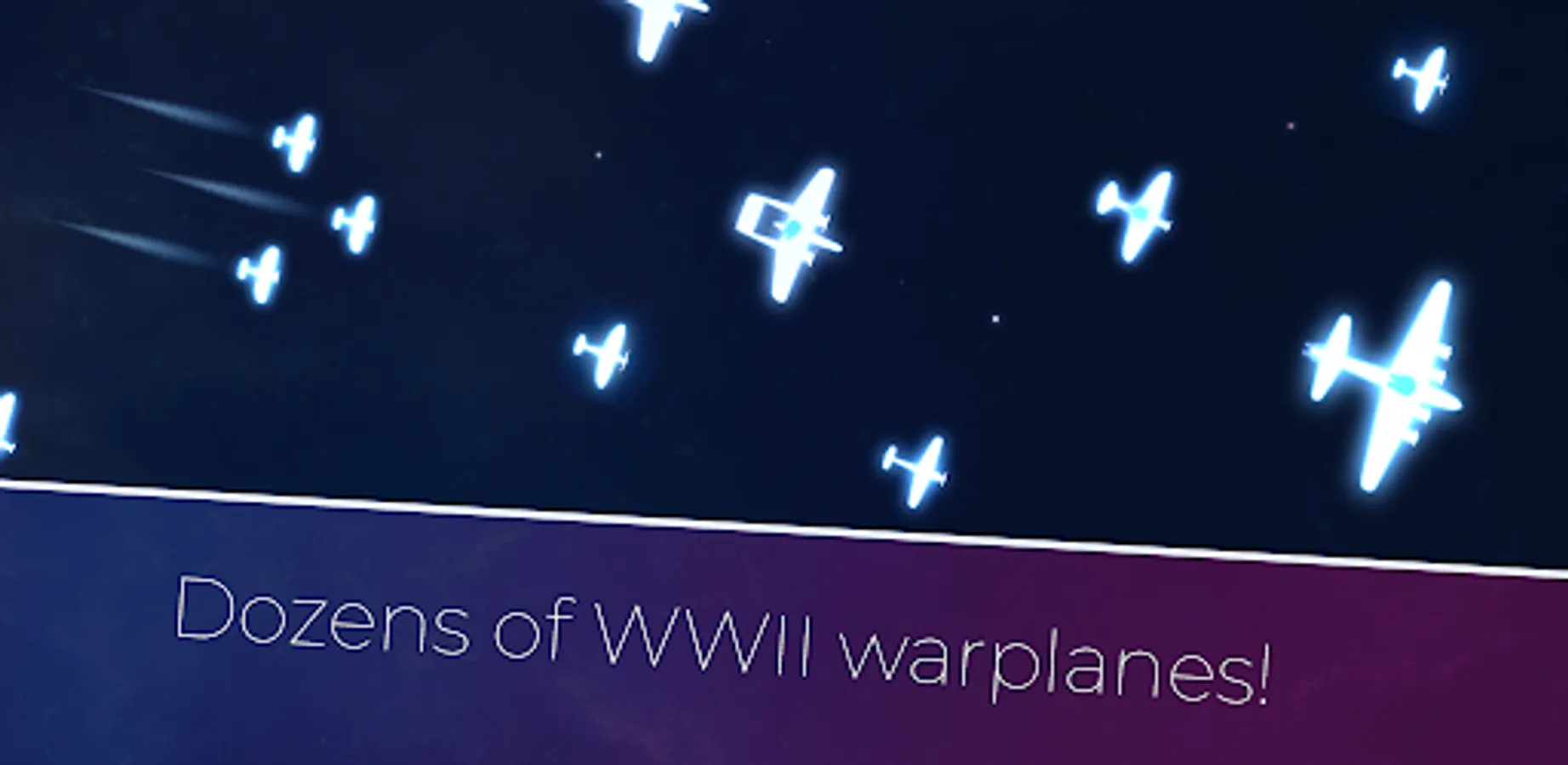 Hi aces! Maybe you've played our previous game "Shadow warplanes", and now we are presenting a new updated version - Warplanes of Light! Here we've added a lot of new interesting features, like graphics, reduced size of game, battle system, and of course plenty of aircrafts! Join the air action with your favorite World War II fighter jets, attack planes and bombers!