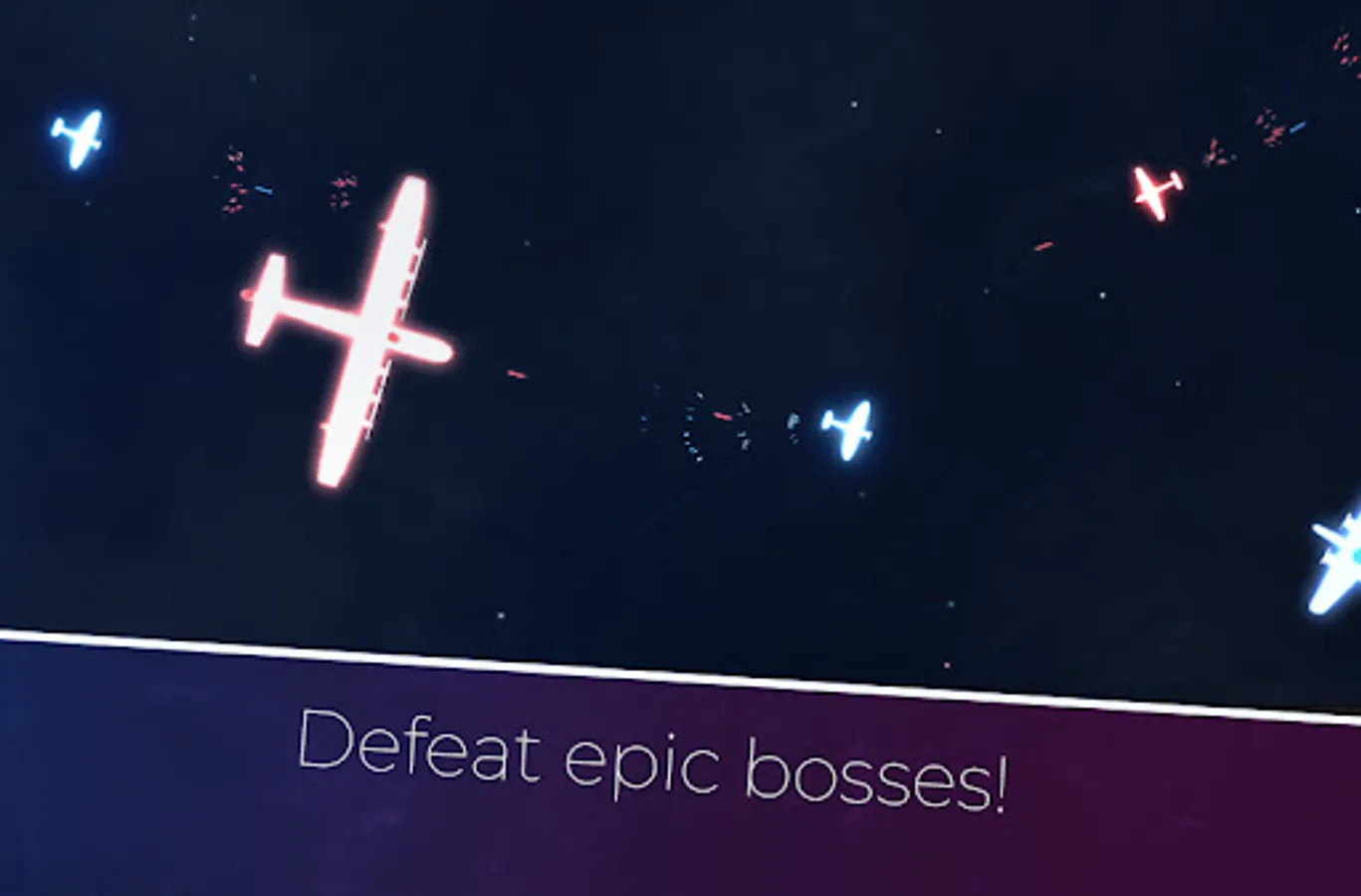 Come to hangar and select warplane, join dogfights, fight epic bosses and level up your pilot, higher ranks unlocks new aircrafts and new types of weapons - try new 2D WW2 simulator game! If you get bored by flying the plane, try to play as a turret gunner of heavy fighter or bomber. Win crazy air combats against German, Japanese and Italian aircrafts of WW2! Collect gems to buy epic elite aircrafts or to immediately fix your plane!