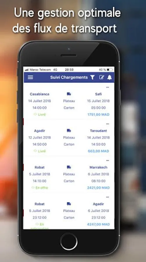 The Kourtim app allows you as a sender to plan and monitor every step of your shipments in real time and simplify your flow of information with your ecosystem.