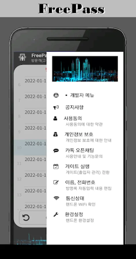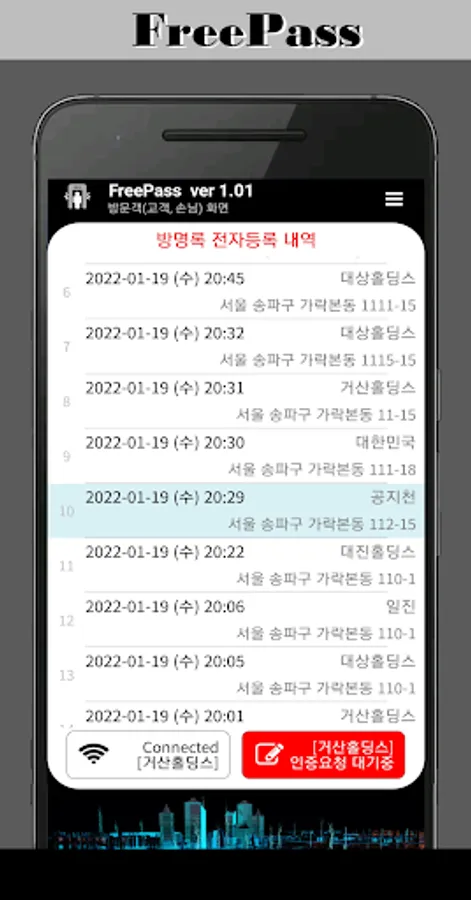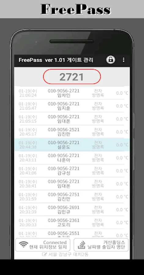 When customer authentication (visitor phone entry/exit phone) is performed when a visitor enters, the content is transmitted in real time and displayed immediately on the administrator's cell phone (tablet) that controls access.