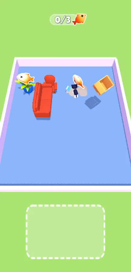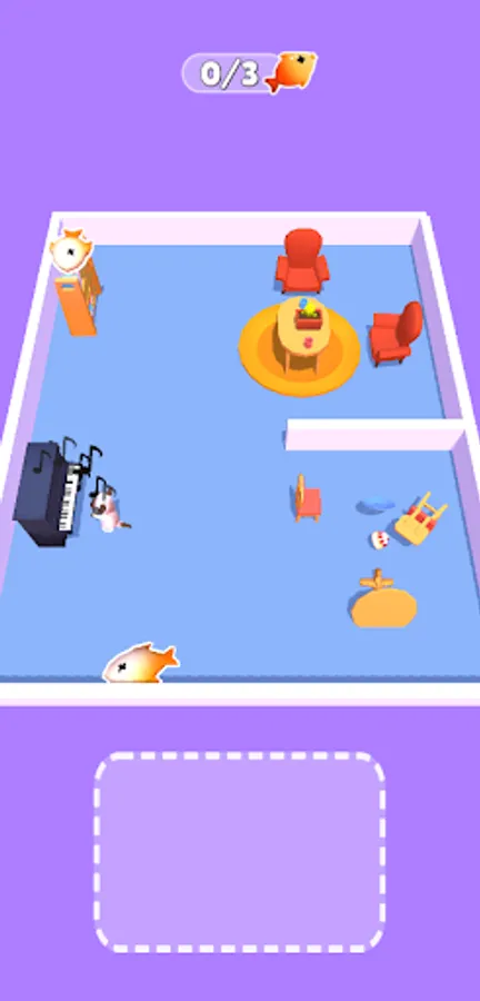 Delicious fishes wait for us inside the room but where all of them!? Let's scatter room about, find delicious fishes and eat them all Mrrrr!