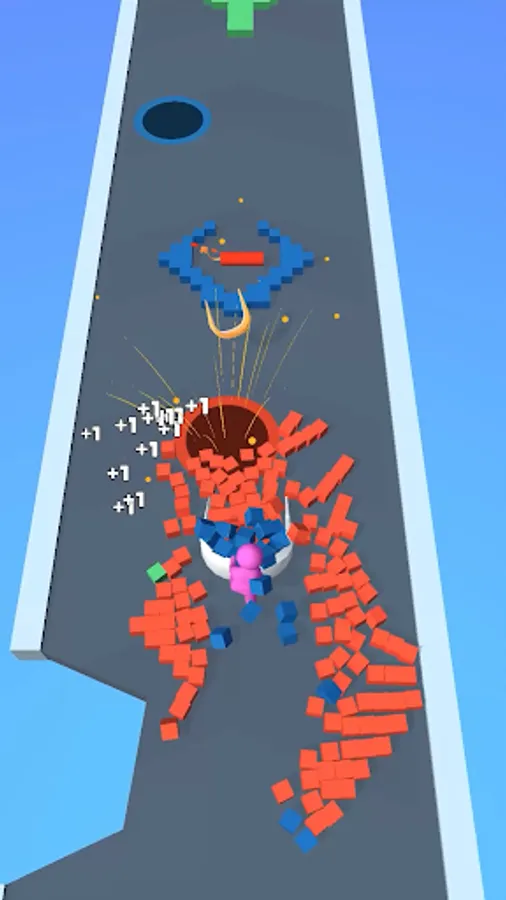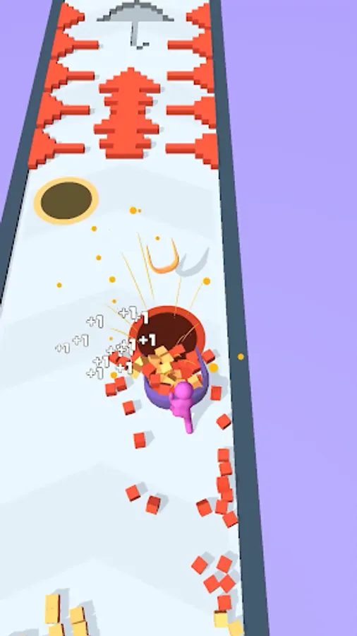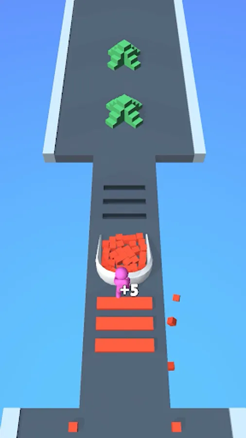 Use your scoop to collect pieces around. Destroy ready-made 3D shapes create new ones by filling in the holes. Try to pick as many cubes and objects as you can, try to sell them to matching areas, and try to avoid obstacles like dynamites or smash hammers.