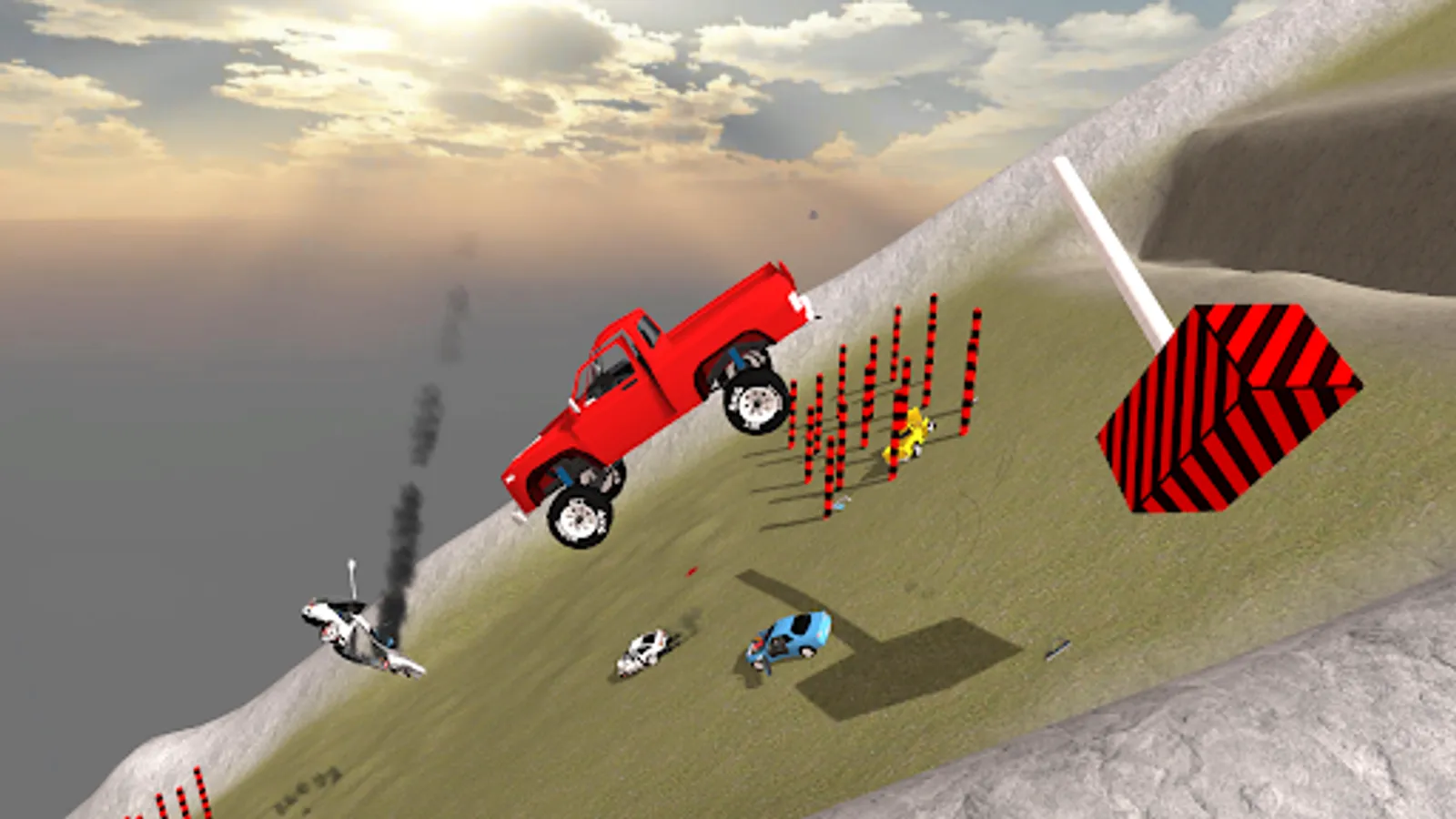 Realistic car crash simulator. Drive cars down the slopes and smash them into pieces. Destroy and tear down everything around you. Get the car off a cliff and watch it crash!
