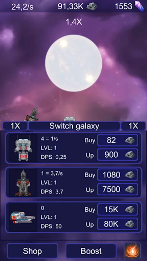 Idle galaxy clicker: spaceship miner tycoon is the simulator for those who dont want to spend to much time clicking or who wants it... Doesnt metter because we will listen to players and try to provide updates that you`d like to see.
