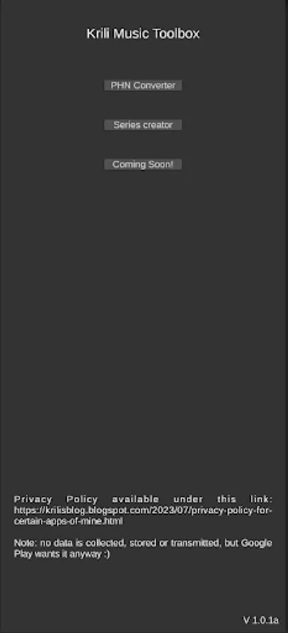 According to the new Google Play policy, I am obligated to have a Privacy Policy, even if I do not collect, store or transmit any data. The app is not so different from a calculator, it just calculates things from your input, occasionally randomly generating stuff (like the series). When you close the app, every data inputted is definitively lost, so pay attention! ;)