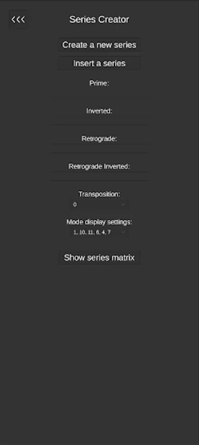 - A dodecaphonic series analyser with inverse, retrograde and retrograde inverted, transposition, random generation of a new series and input of an user defined one, and a series matrix
