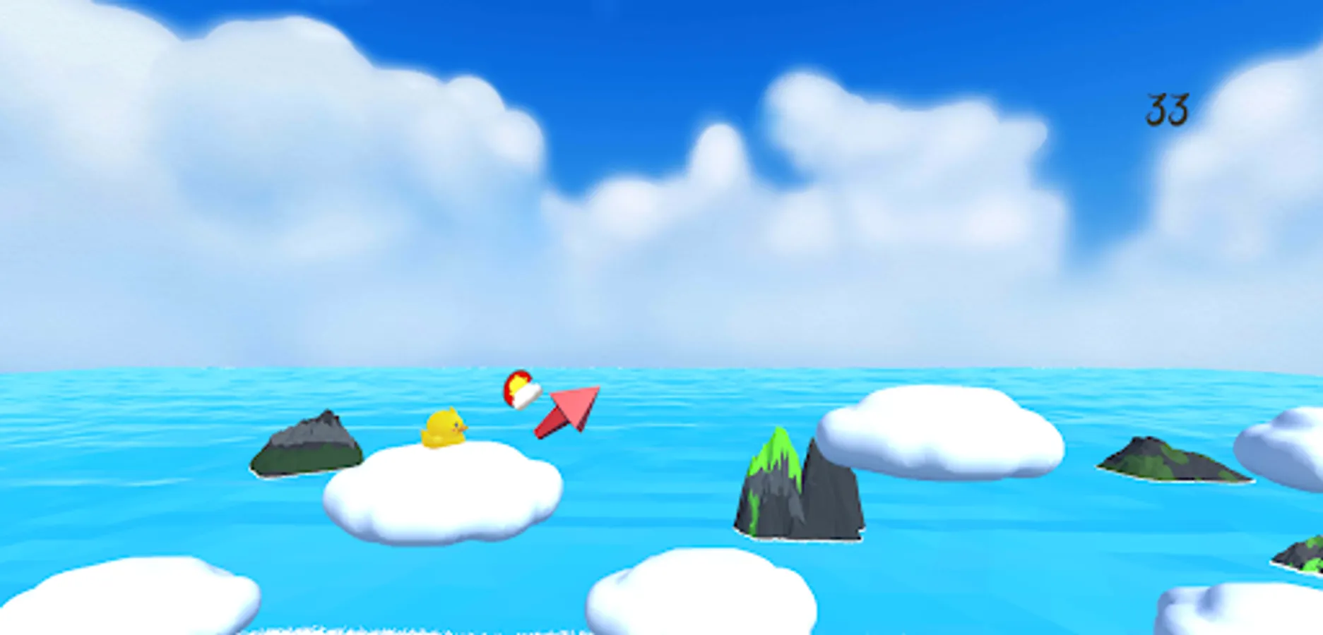 The game takes place on the coast of a mountainous region. Although the view is quite breathtaking, the fall for the duck if you miss a cloud is life-ending. You may be wondering, how does one stay alive and hop effectively through the clouds? The duck will jump in the direction of the indicator provided in the game - look for the big red arrow when preparing to jump. The indicator will appear when pressing down on the screen. The catch is, the longer you press down on your phone, the more strength the duck will try to fly with. Once you have the desired amount of strength for the duck, release your finger and watch the magic happen! You have to time it perfectly though as the duck is relying on you to find its family! The strength of the duck's flight is limited to a certain max capability. You will see this in the game with a provided indicator that shows the estimated amount of strength the duck is about to fly with. Over time, the duck's strength will grow; as in, it will be much quicker for you to set the duck with a max amount of strength, but be careful as your mind may have adapted to the strength of before.